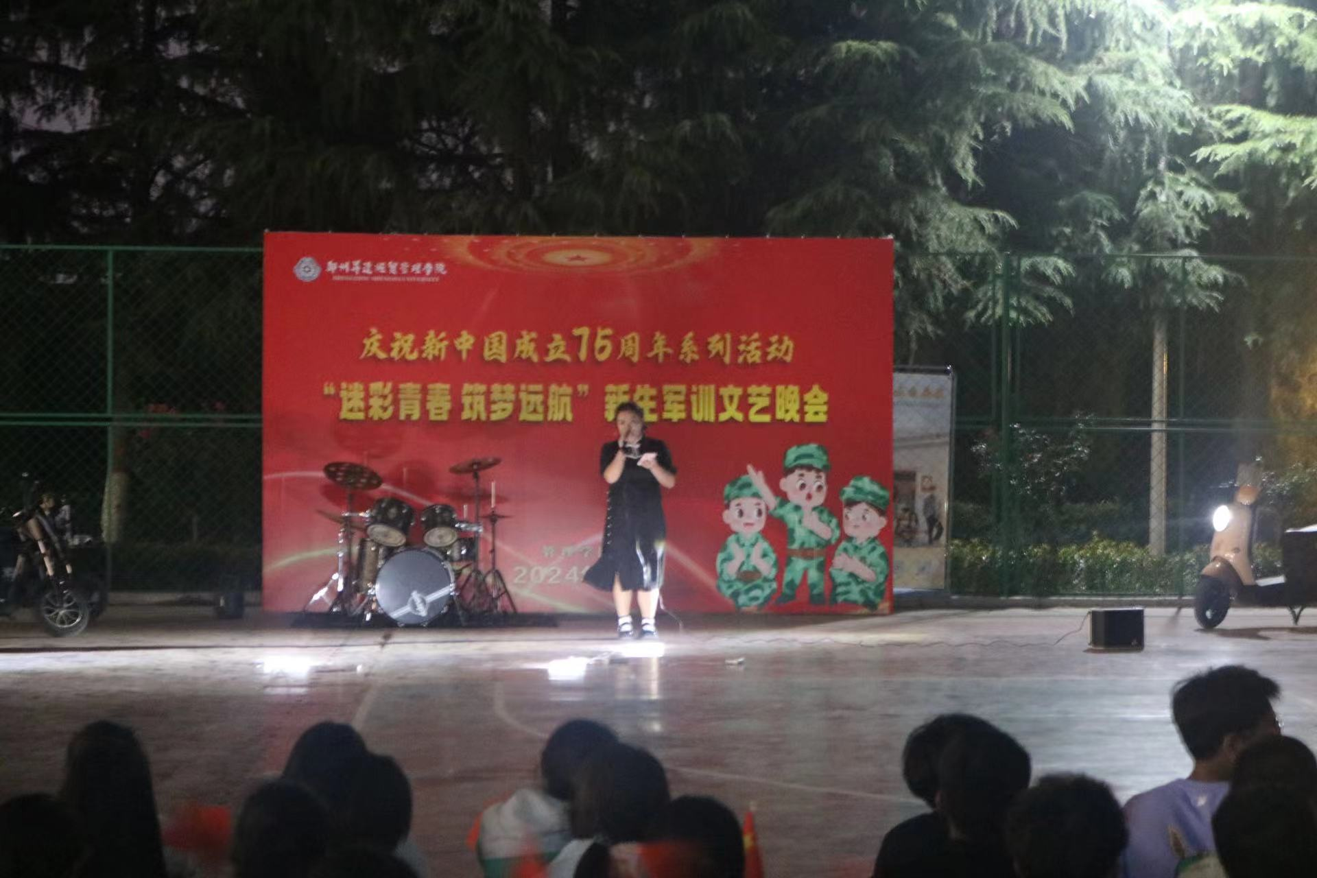 刘娜学姐为我们演唱了《小镇姑娘》,歌声悠悠,唱响了军训生活的酸甜苦辣。文艺部王泽涵带来《多远都要在一起》,她的歌声婉转深情,仿佛在诉说着新同学之间渐渐滋生的友谊。那音符从演唱者的口中飞出,在空气中交织、碰撞,最后化作一股暖流,流淌在每一个观众的心间。