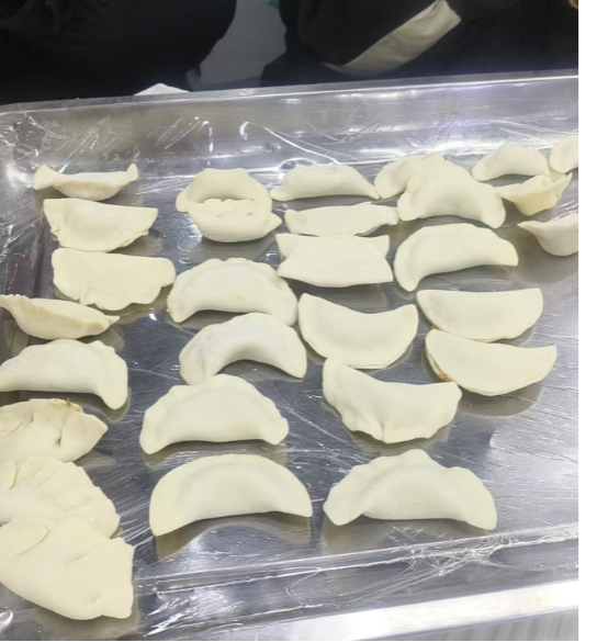 活动开场,各个部门有序上前领取包饺子的“装备”——白白嫩嫩的饺子皮与香气四溢的馅料,团学会考虑到有少数民族的同学,还准备一些符合他们口味的馅料。平日里,同学们是埋首书海、笔不离手的求知少年,此刻却纷纷撸起袖子,任由白花花的面粉沾满双手,迫不及待地亮出各自的“绝活儿”。观摩着大家这般娴熟利落的操作,不难猜出,假期居家的日子里,他们定是厨房的常客,帮着妈妈擀皮、包馅,将对家人的爱与感恩,妥妥地包进了每一个饺子里。