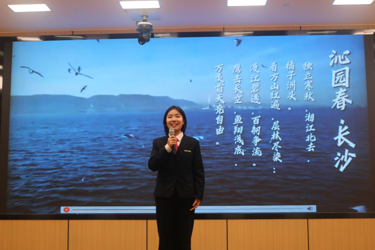 二号选手辛颖带来的是《传统文化赋能大学管理》模拟主持,她以沉稳的开场梳理传统文化与校园管理的融合思路,既点明“以文化人、以文治校”的主题内核,也用生动的案例调动现场对传统文化创新应用的关注。