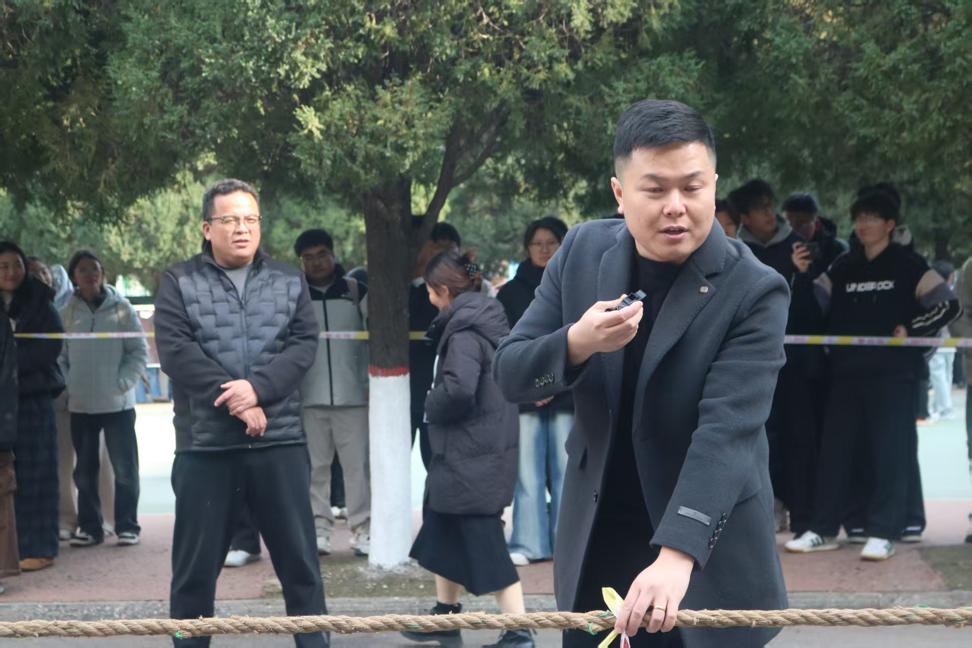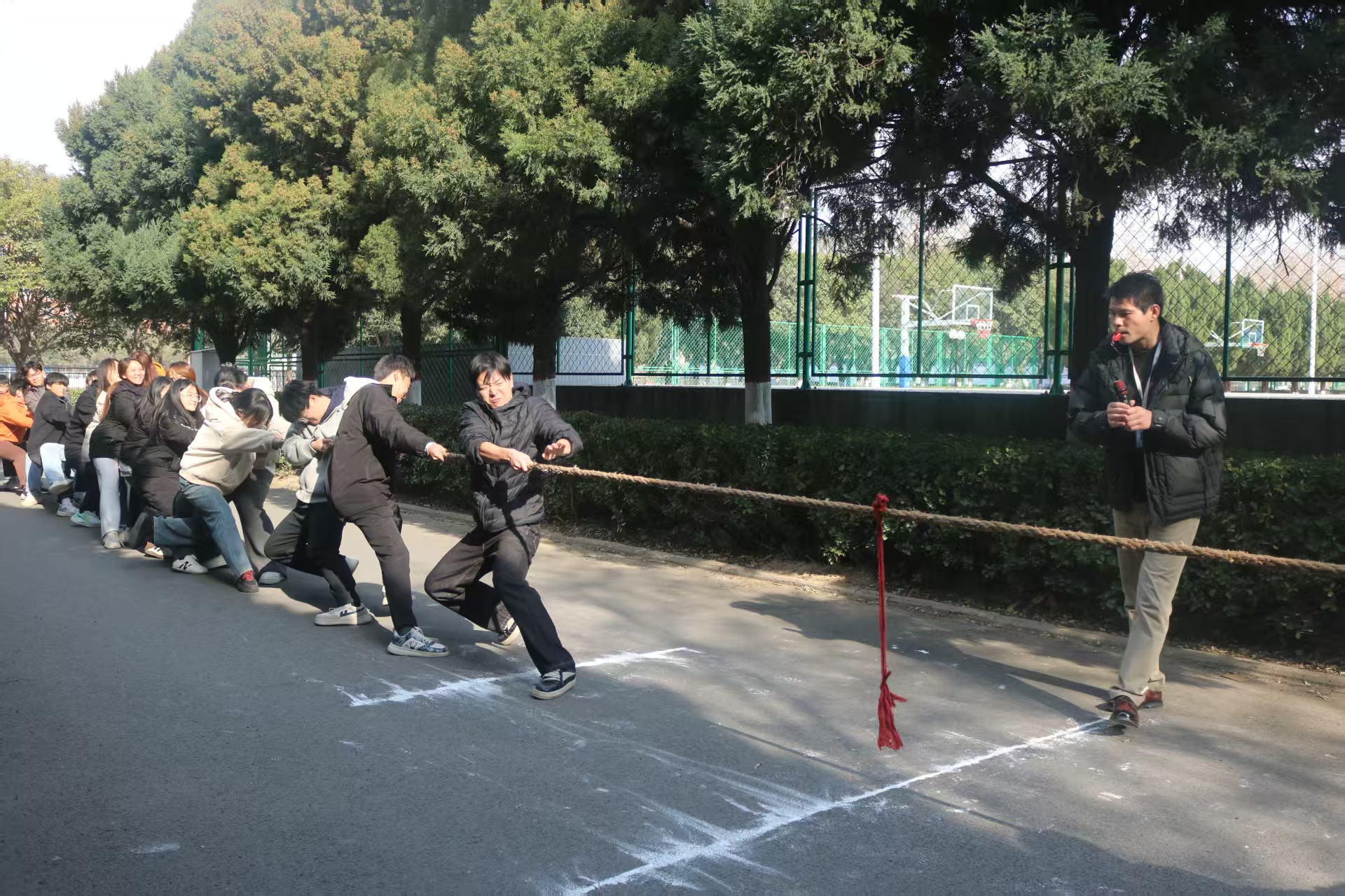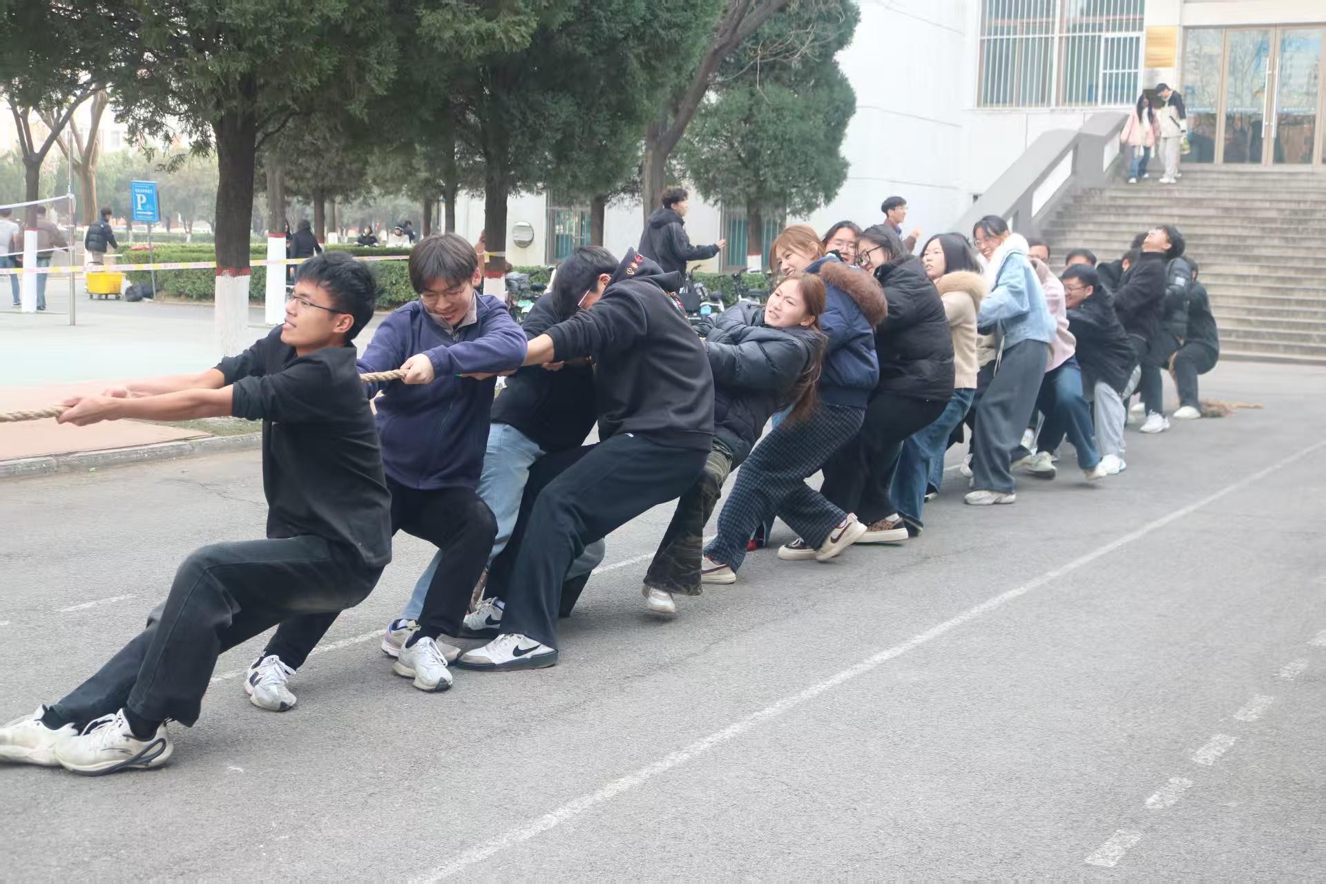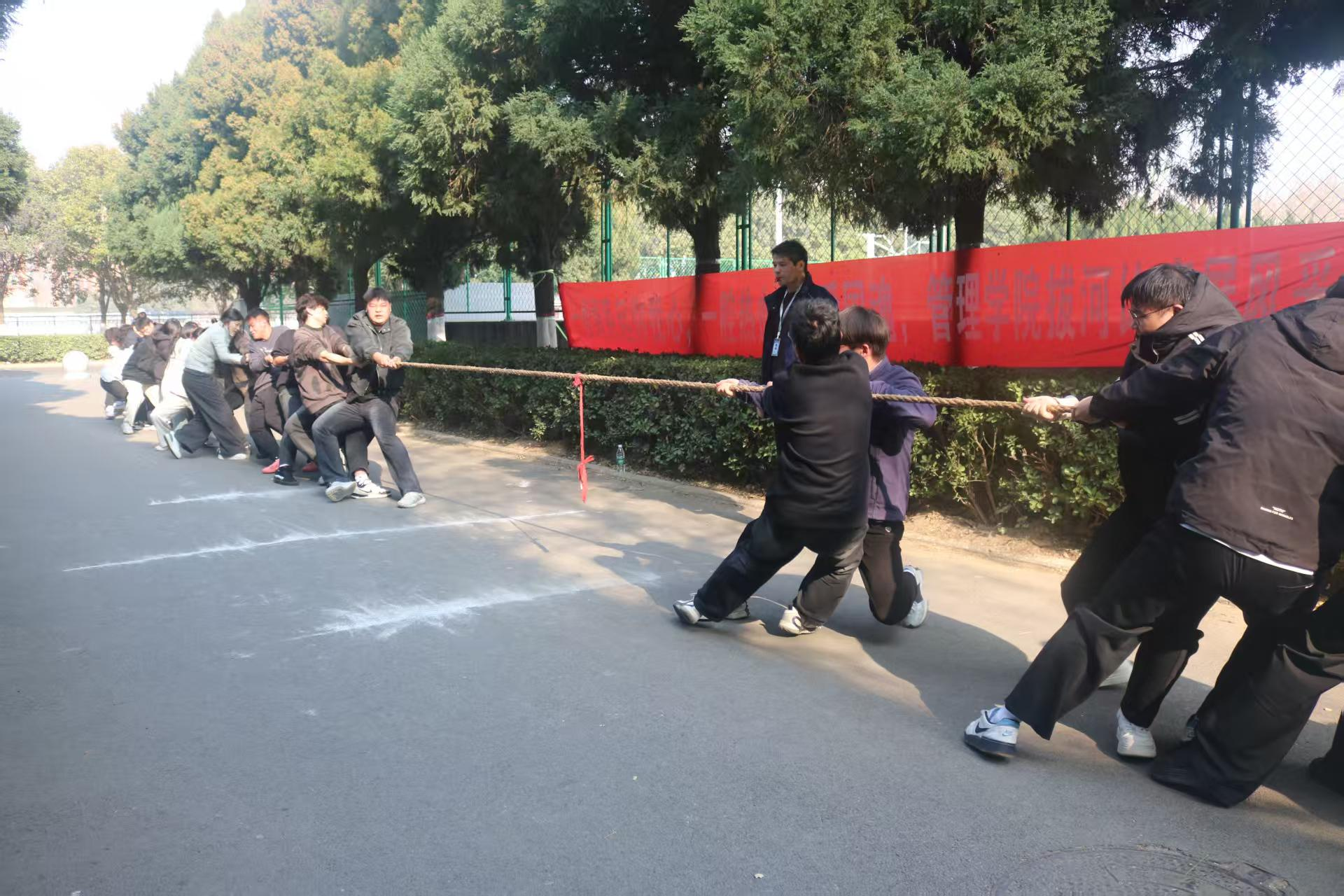 为丰富同学们的课外娱乐生活,提高大家的综合素质,培养积极向上的进取精神,管理学院于12月8日至10日在万兴体育馆北侧自力羽毛球场旁举办拔河比赛。