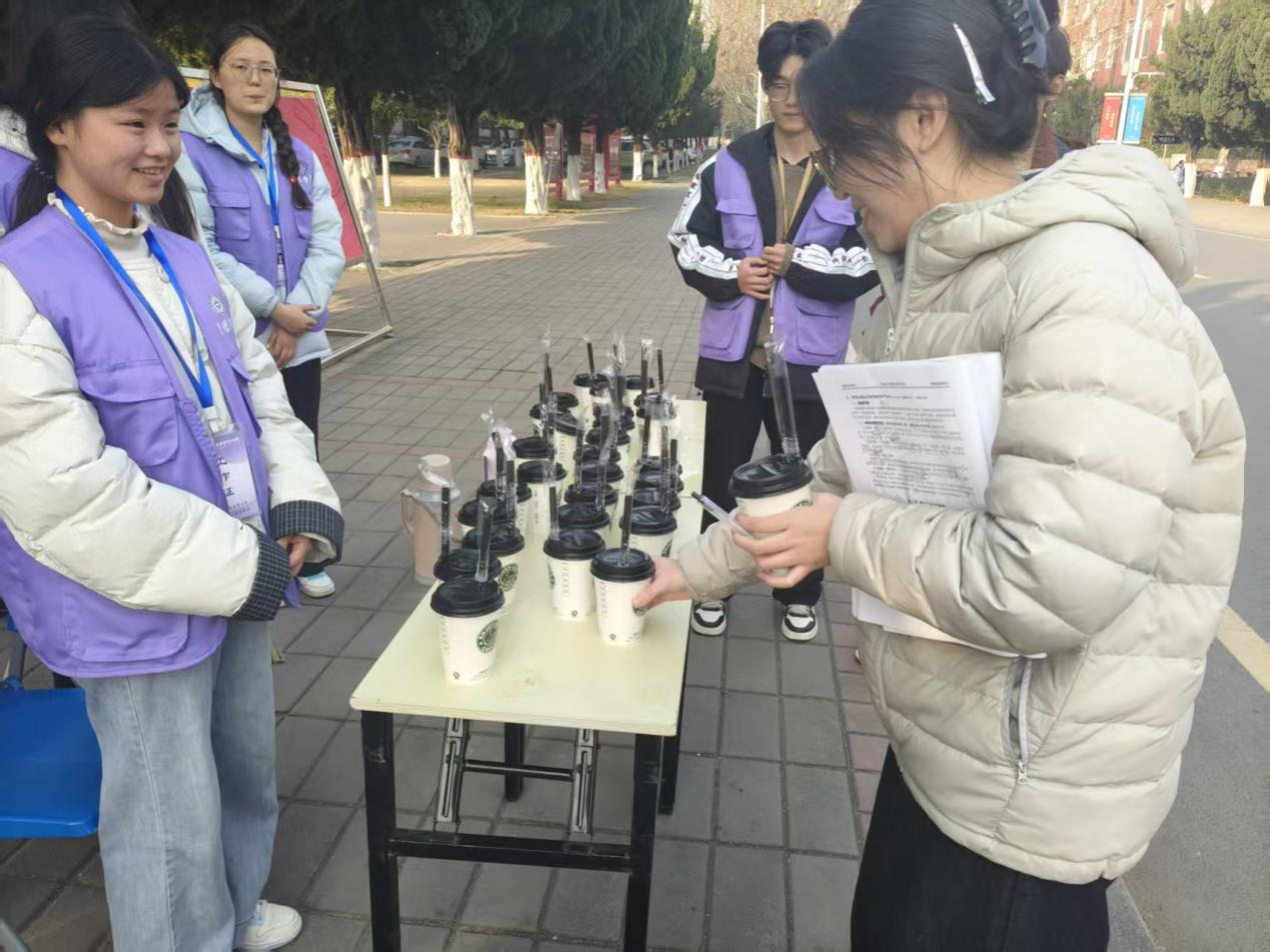 为切实体现对备考学子的关怀,管理学院精心准备具有提神醒脑功效的热咖啡,并在送出每一杯咖啡时附上暖心鼓励的话语。对于正在备考的同学们,这份温暖不仅驱散复习的疲惫,更让他们感受到学院的关怀,也为他们注入满满的备考动力。