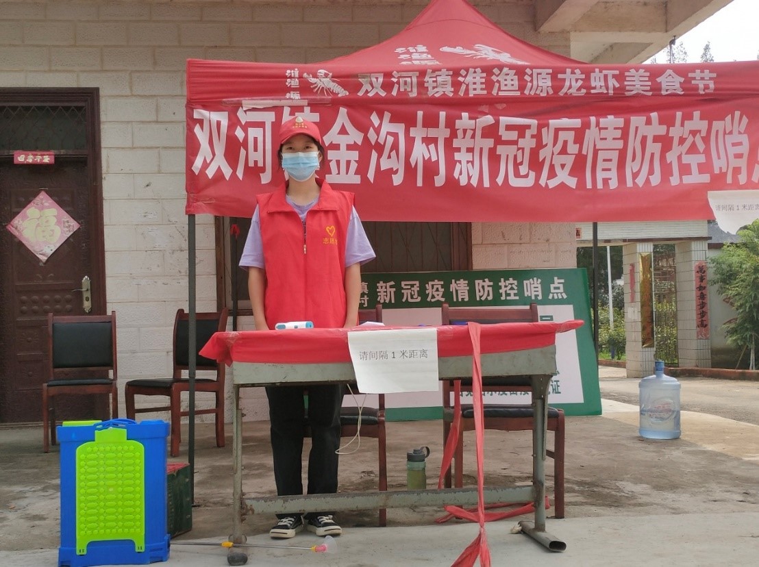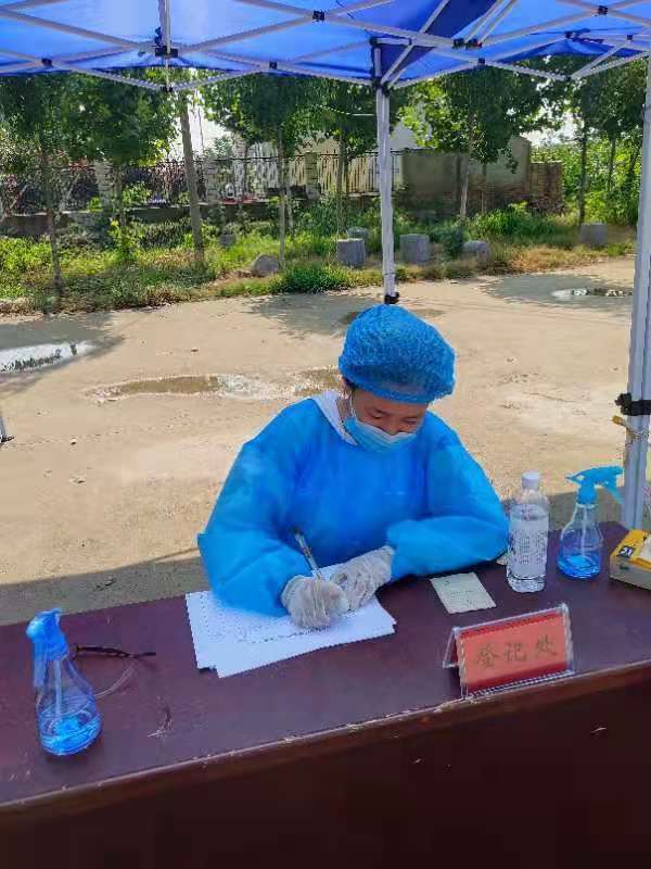郑晶晶,共青团员,管理学院19级旅游管理专科1班副班长。在得知村委会招收志愿者后,主动报名,成为了一名防疫志愿者。志愿者服务期间主要工作是辅助村委会工作人员挨家挨户排查居民疫苗接种情况、疫情期间返乡人员排查,在卡点值班,耐心询问并记录每一位出入人员的各项信息。