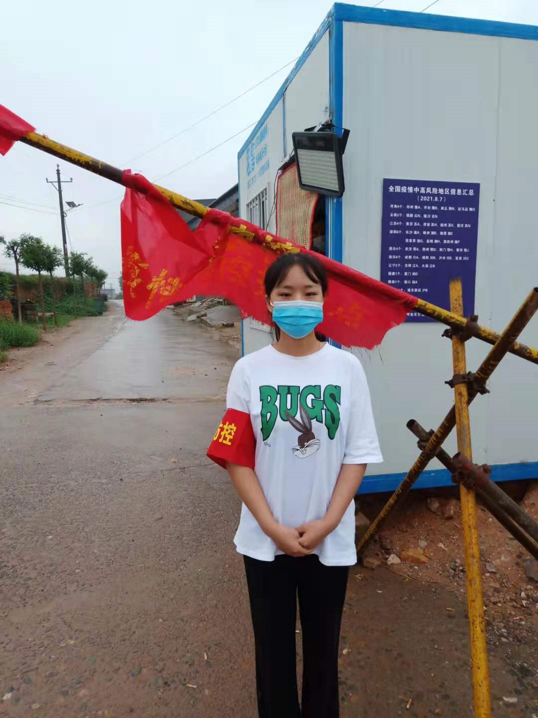 张雅丹,19级旅游管理本科2班,共青团员,张雅丹同学在得知村中正在全力进行疫情防控,积极投身于河南省洛阳市伊川县彭婆镇柏树沟村疫情防控卡点执勤,与村中领导一起全面落实各项防控工作任务,每天在村口执勤,对进出的人员进行登记,并进行村中防控知识宣传教育,引导村民正确对待疫情,落实好安全防护措施。