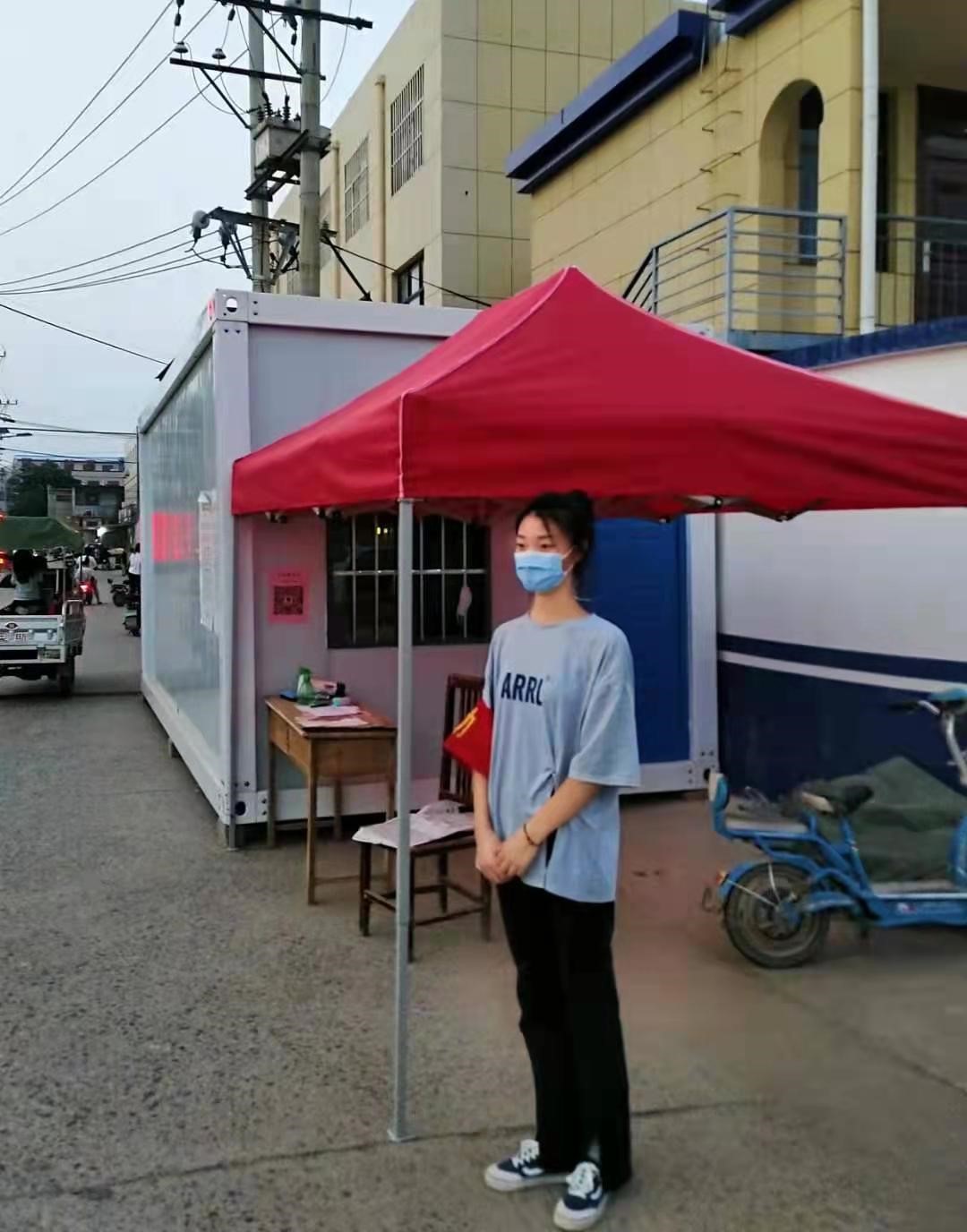 8月11日,该同学在村口站岗,负责让过往的车辆扫行程码。一整天除了饭点都在岗位上工作。8月12日,家乡开始第一次核酸检测,她踊跃地参与到第一次核酸的组织工作中。该同学主要是引导群众录入信息、间距排队并引导群众到指定的医生面前做核酸,到下午六点结束核酸工作;晚上又到岗位值班,十点结束工作。接下来的数天该同学都会从事不一样的志愿工作。安家谊同学认为家乡有难,当代青年应勇敢奉献。作为青年志愿者就应该用自己的实际行动为国家做贡献。河南必胜!中国必胜!