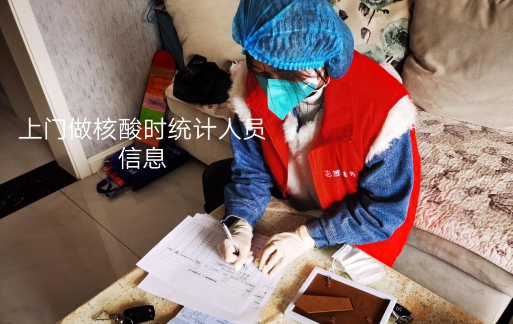 在疫情防控期间,1月8日我报名成为了一名抗疫志愿者,每日任务是带领医疗人员一起上门为居家隔离的人员做核酸检测,上门后首先统计居家人员信息,填写身份证号等个人信息后便由医疗人员为其做核酸检测,1月8日下午还要上门让居家隔离人员签居家医学观察承诺书并拍照上传,1月9日下午挨家挨户统计外出人员排查表,将外来租户信息确认登记,并询问外出工作地点,以保证后期外出上班的稳定运行,统计完信息后,将信息登记上传制作表格,以便于后期查询方便。
