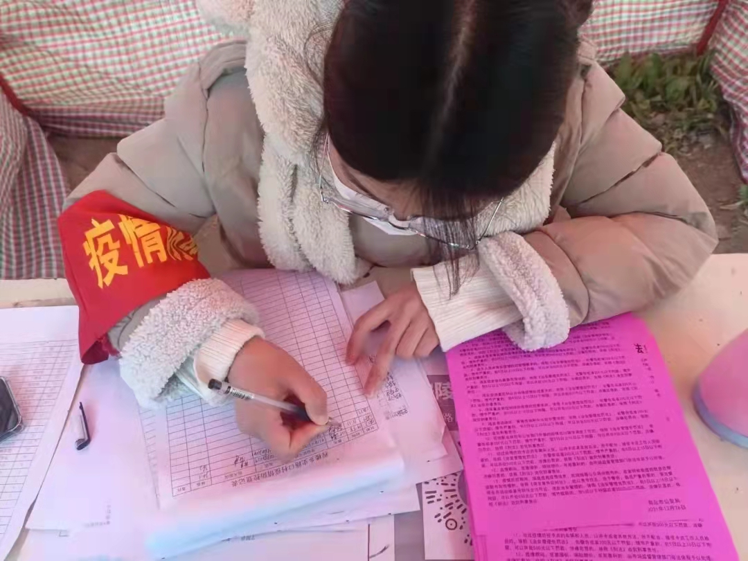 我在村里设置的疫情防控卡点处值班,对外出的人进行登记,对进村的人进行检查和体温的测量,每天早晨8点到中午12点,我们在村党员与干部的带领下,坚守在疫情防控服务点,查看来往人员健康码、行程码、核酸证明以及体温情况,耐心帮助不会填写信息的居民,排查外来人员,提醒居民注意防疫事项。