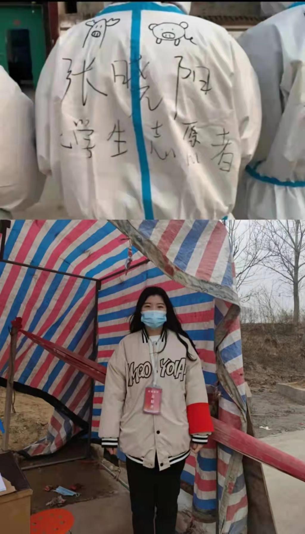1月11日,张晓阳正式成为一名大学生志愿者,她积极投身于工作,做事认真负责,有团队精神,积极努力做好自己的本职工作。在志愿服务期间,她的主要工作是:为做核酸检测的人员登记信息、核酸现场布置、维护现场秩序等。