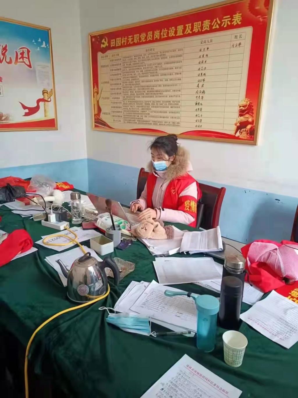 方静宜的家乡在漯河市临颍县石桥乡王庄村,由于许昌禹州爆发了疫情,与其家乡相邻较近,她的家乡便开始积极部署疫情防控工作,在每个村设置疫情防控点。方静宜积极报名成为一名志愿者,配合村干部在村里防控点执勤,早上准时到点执勤,主要任务是对外来车辆及人员进行登记,扫健康码、行程码、测体温等。