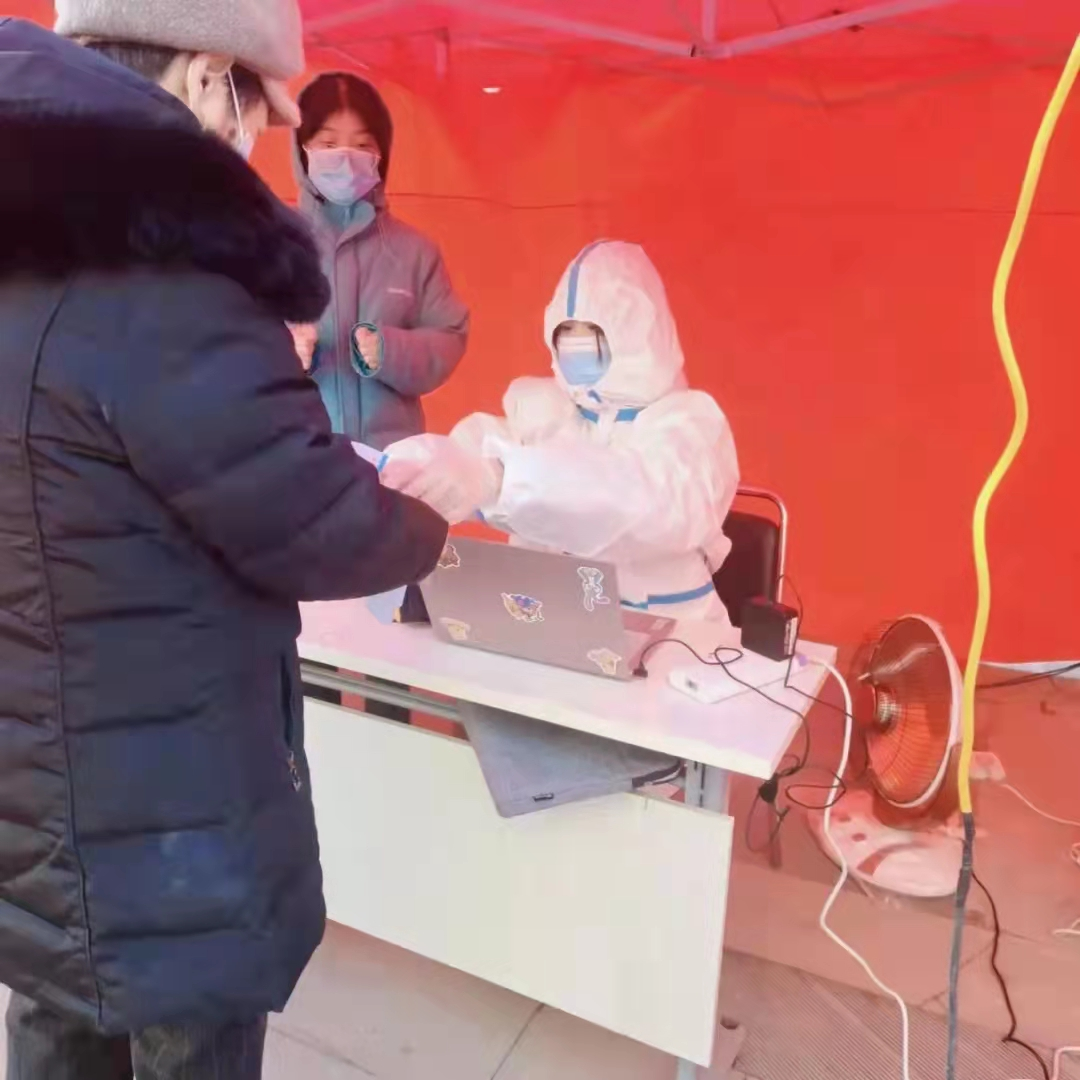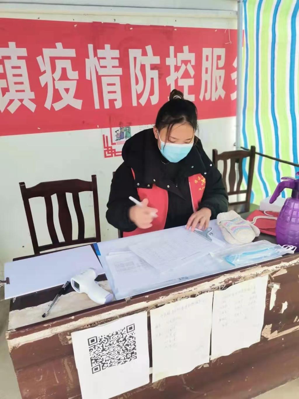 在寒假期间,她积极参与乡镇疫情防控工作中。平时,刘盼盼同学主要在本村疫情防控监测点进行值班、对过往人员进行体温检测和双码排查、对来往车辆进行信息登记;在商丘睢县进行全民核酸时,她配合相关人员一起维持核酸检测的现场秩序,帮助中老年人进行核酸预约,减少等候时间;核酸采集结束后,她跟随医务人员对居家健康检测的村民进行核酸信息登记,为疫情防控工作献出了自己的一份力量。