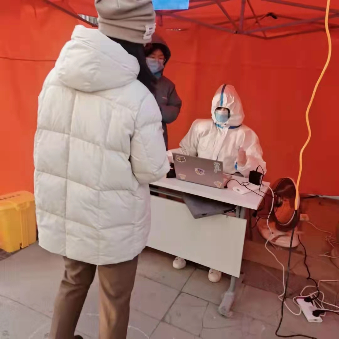 马跃萍同学不辞辛苦,坚持在抗疫“一线”,帮助居民上传核酸信息,宣传疫情防控知识,提高居民的防疫意识。