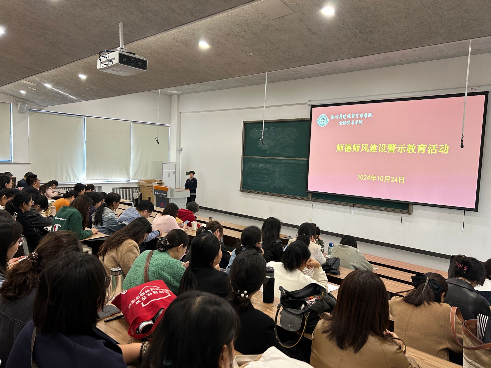 为进一步加强师德师风建设,提高教师的职业素养和道德水平,引导教师树立正确的教育价值观,增强职业道德意识,严守师德底线,为学生健康成长营造良好的育人环境。10月24日下午,金融贸易学院在教学3号楼107召开师德师风建设警示教育会议。会议由金融贸易学院党委书记钟江鸽主持,全院教职工参加。