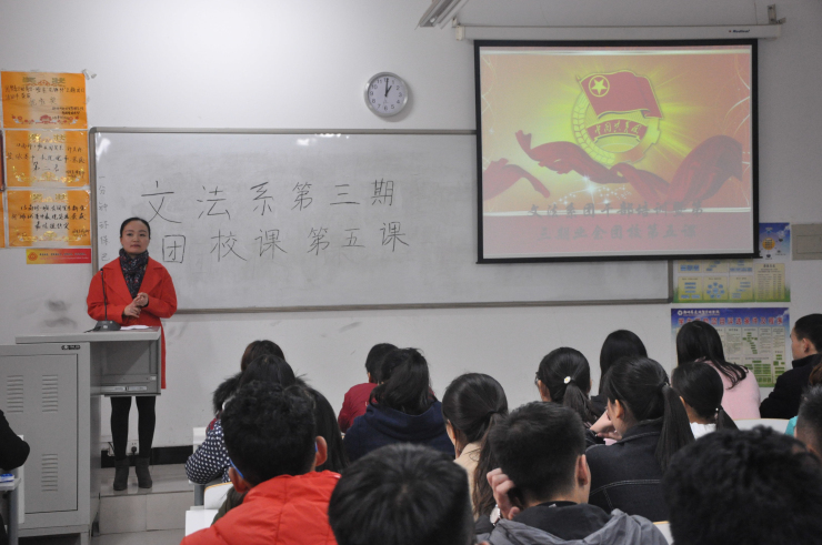 为了提高同学们的思想觉悟,明白作为当代大学生的使命和责任,11月16日中午1点在道镕楼106进行了文法系团干部培训暨第三期业余团校第五课。本节课由文法系团委书记郑玲玲老师主讲,团校副班主任刘月主持,文法系15、16级团干部、本期团校全体学员参加了此次活动。