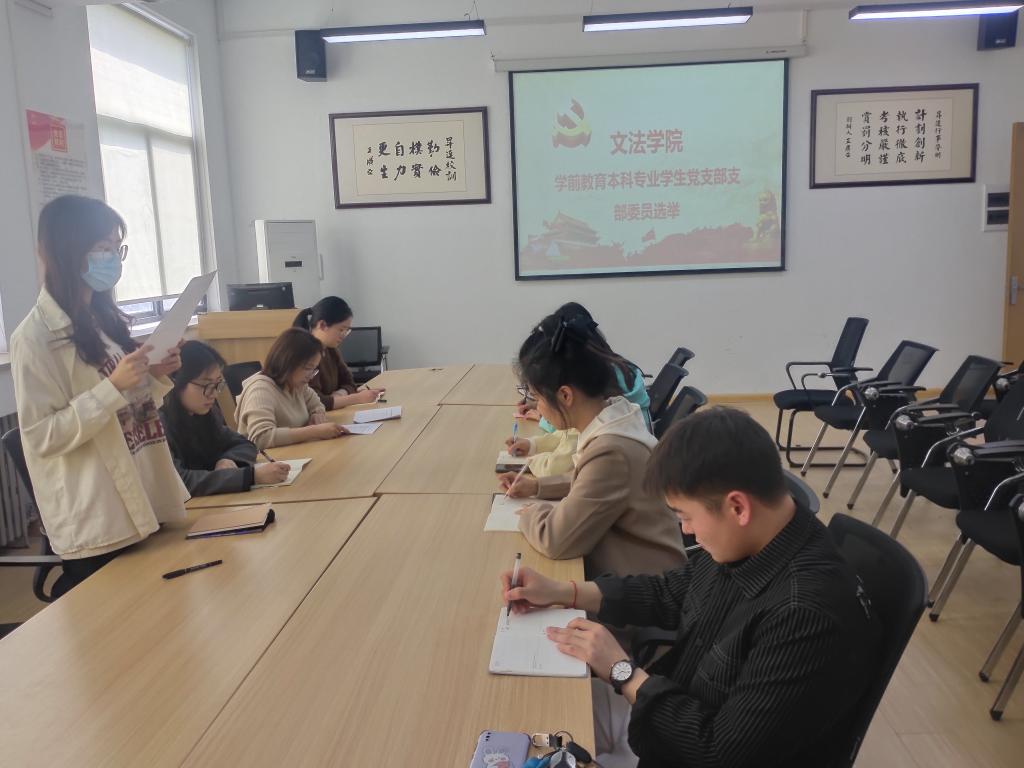 为进一步加强党支部建设,按照《中国共产党章程》和《中国共产党基层组织选举工作条例》的有关规定,经文法学院党委批准,2023年3月10日,学前教育本科专业学生党支部在教学1号楼314召开成立大会,选举产生支部委员会,学院党委统战委员李南方出席了会议,大会由王卫丽同志主持。
