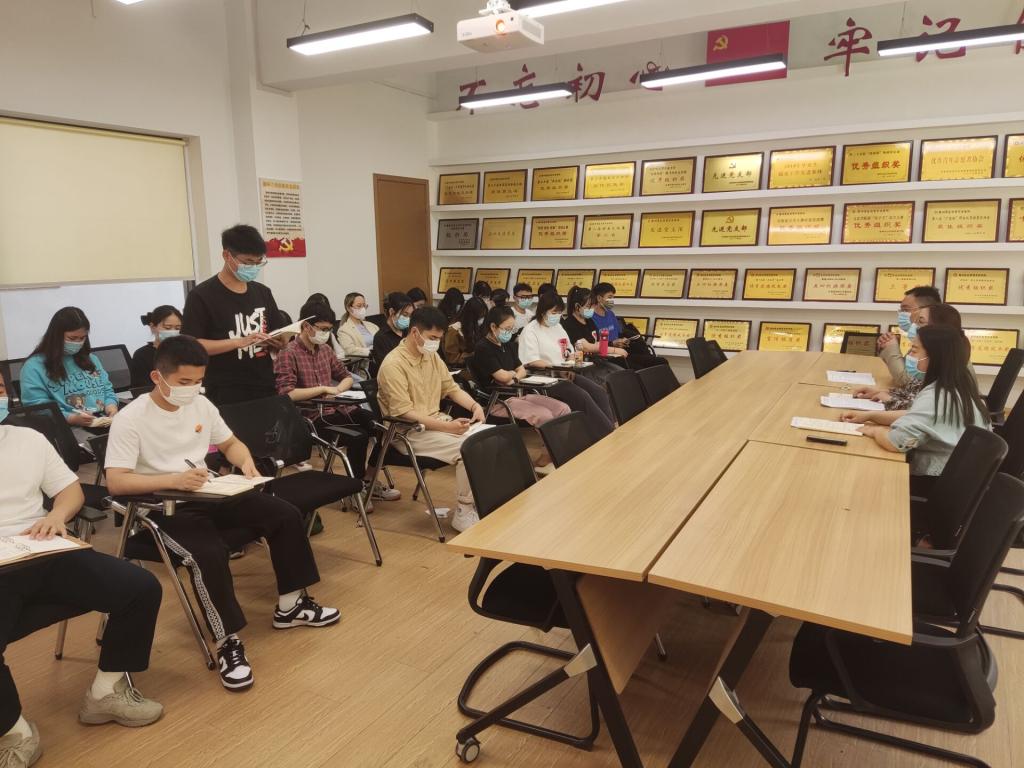 随后,两位党员学生代表就此次学习的体会进行了发言,表示作为一名党员,要在实现民族复兴的赛道上奋勇争先,努力成长为有理想、敢担当、能吃苦、肯奋斗的新时代好青年,争做学生榜样,发挥号模范带头带头作用。
