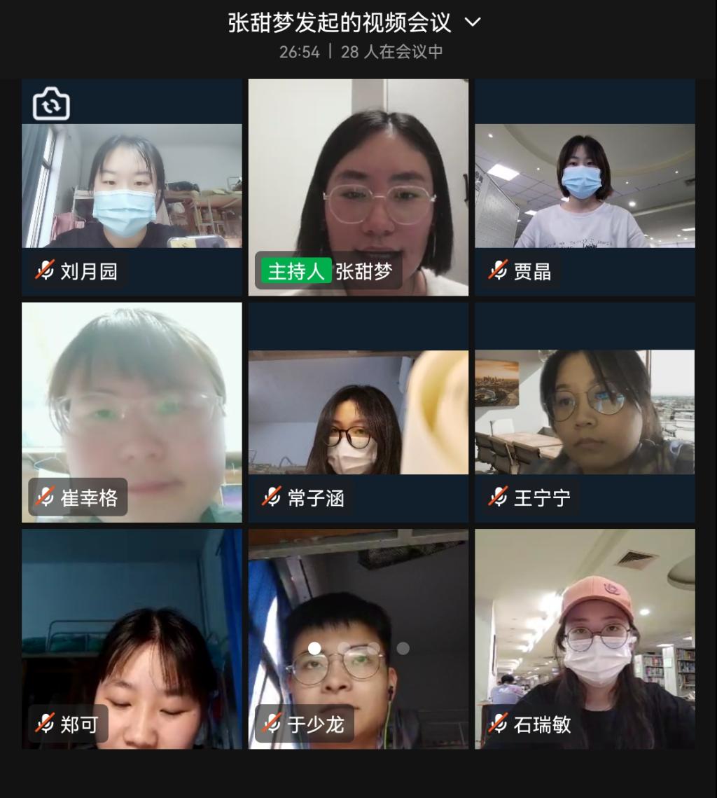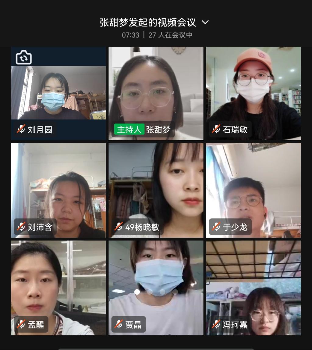 5月17日下午,文法学院汉语言文学专业学生第一党支部召开线上会议,学习贯彻习近平总书记在中国人民大学考察时的重要讲话精神,中共中央政治局常务委员会5月5日疫情防控会议、河南省委召开新冠肺炎疫情防控工作第十七次专题会议精神,支部全体党员参加了会议,会议由支部书记张甜梦主持。