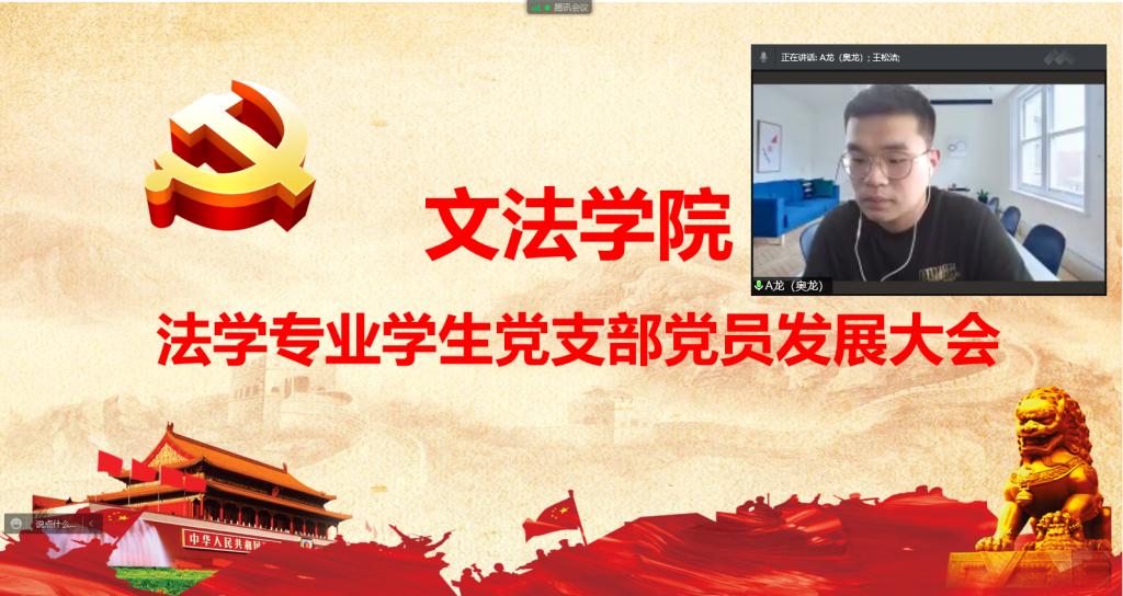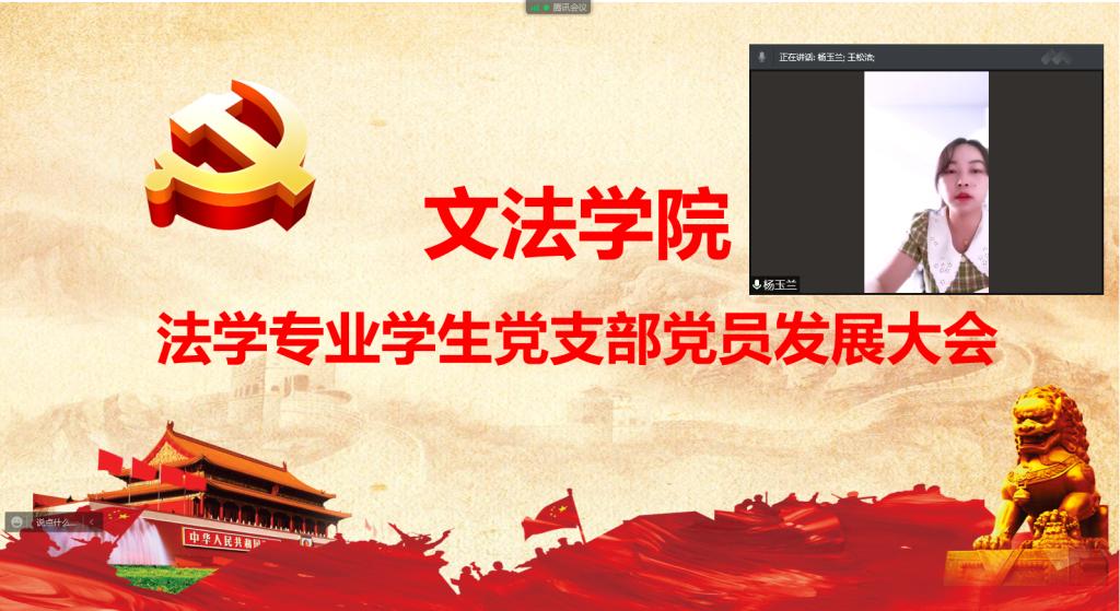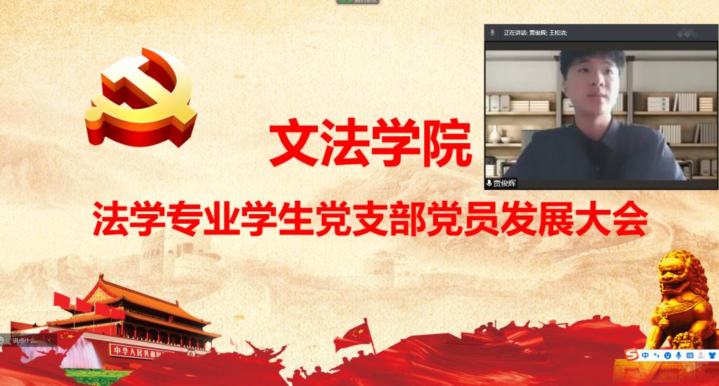6月8日下午,文法学院法学专业学生党支部在线上召开党员发展大会。支部全体师生党员参加会议,会议由支部副书记李玉杰老师主持。