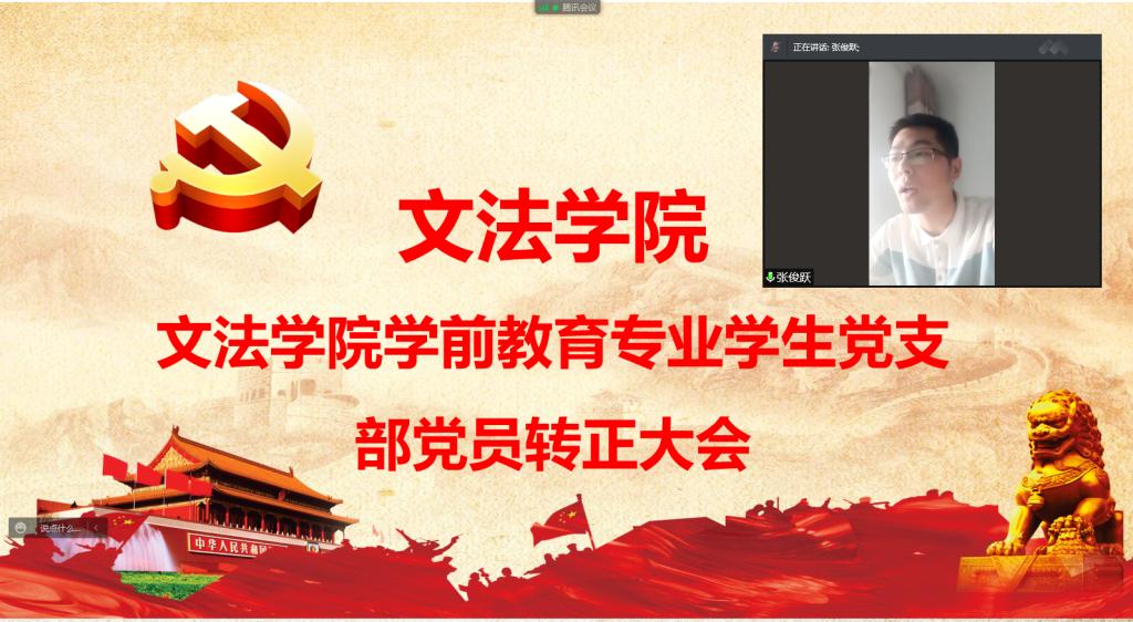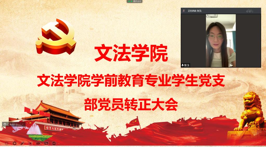 6月8日下午,文法学院学前教育专业学生党支部召开线上预备党员转正大会,支部全体师生党员参加会议,会议由支部副书记张玉主持。