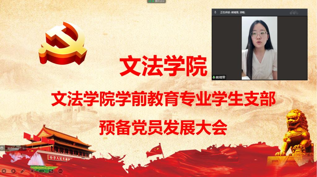 6月8日下午,文法学院学前教育专业学生党支部召开线上党员发展大会,支部全体师生党员参加,会议由熊靖雯老师主持。