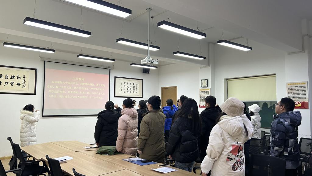 会上,首先由支部书记张丽凯介绍此次预备党员转正大会的流程安排,宣读预备党员转正名单。曹莹、李嫣然、胡梦祺3名预备党员宣读转正申请,向党组织汇报成为预备党员一年来的学习和工作情况。培养联系人对3名预备党员预备期的基本情况进行总结评价。学生正式党员徐潇、胡海洋、赵烨懋等对3名预备党员进行评价和推荐。经讨论及全体正式党员无记名投票表决,一致同意曹莹、李嫣然、胡梦祺如期转为中共正式党员。支部全体党员在张丽凯的带领下面对党旗庄严宣誓。