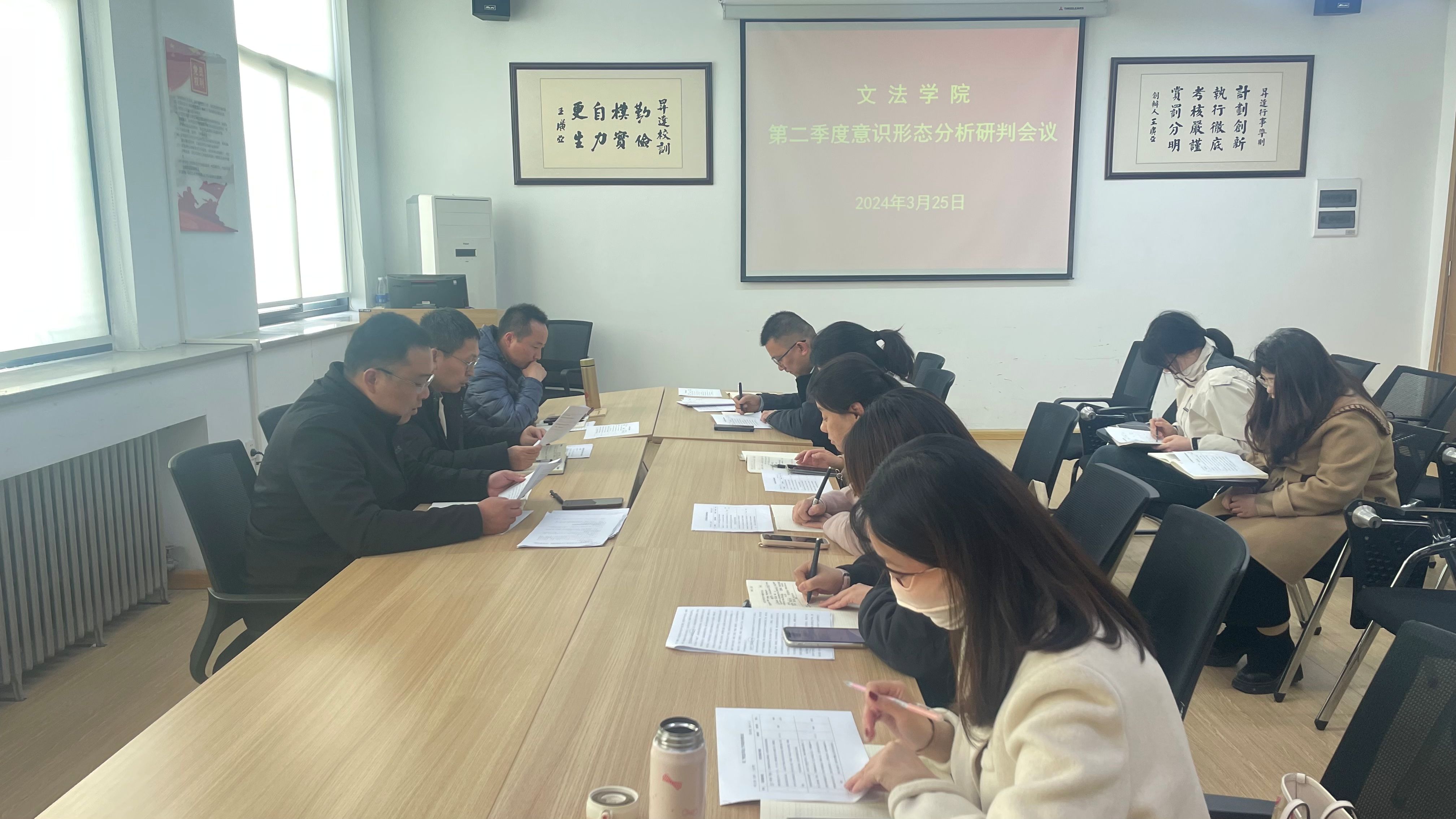 为进一步强化意识形态工作,压实意识形态工作责任制,3月25日下午,文法学院在教学1号楼314会议室召开第二季度意识形态工作分析研判会,文法学院院长段丰乐、党委委员、各党支部书记参加了会议,会议由党委书记刘晓川主持。