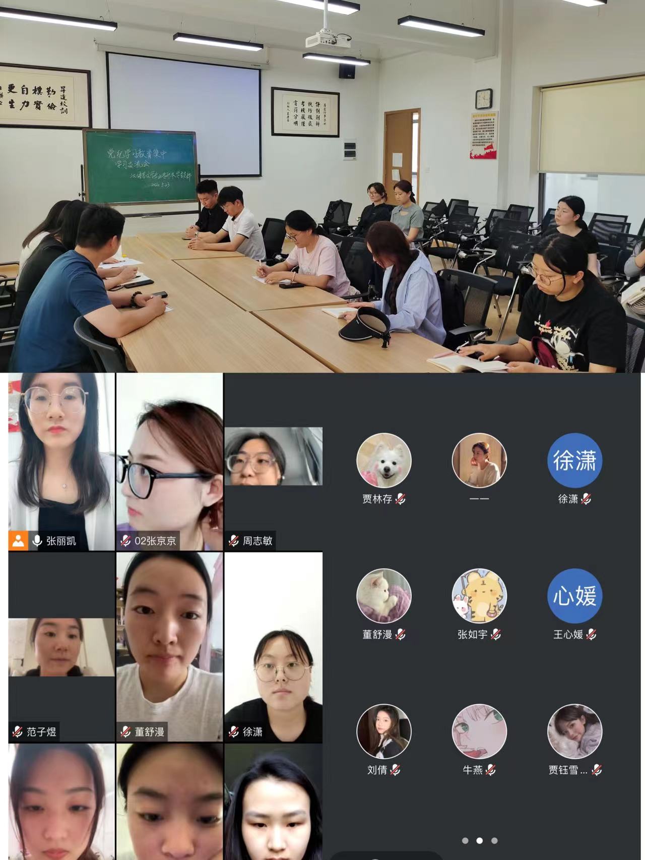 5月23日中午,汉语言文学专业专升本学生党支部采用线上线下相结合的形式召开了党纪学习教育集中学习交流会。会议由支部书记张丽凯主持,支部全体党员参加。