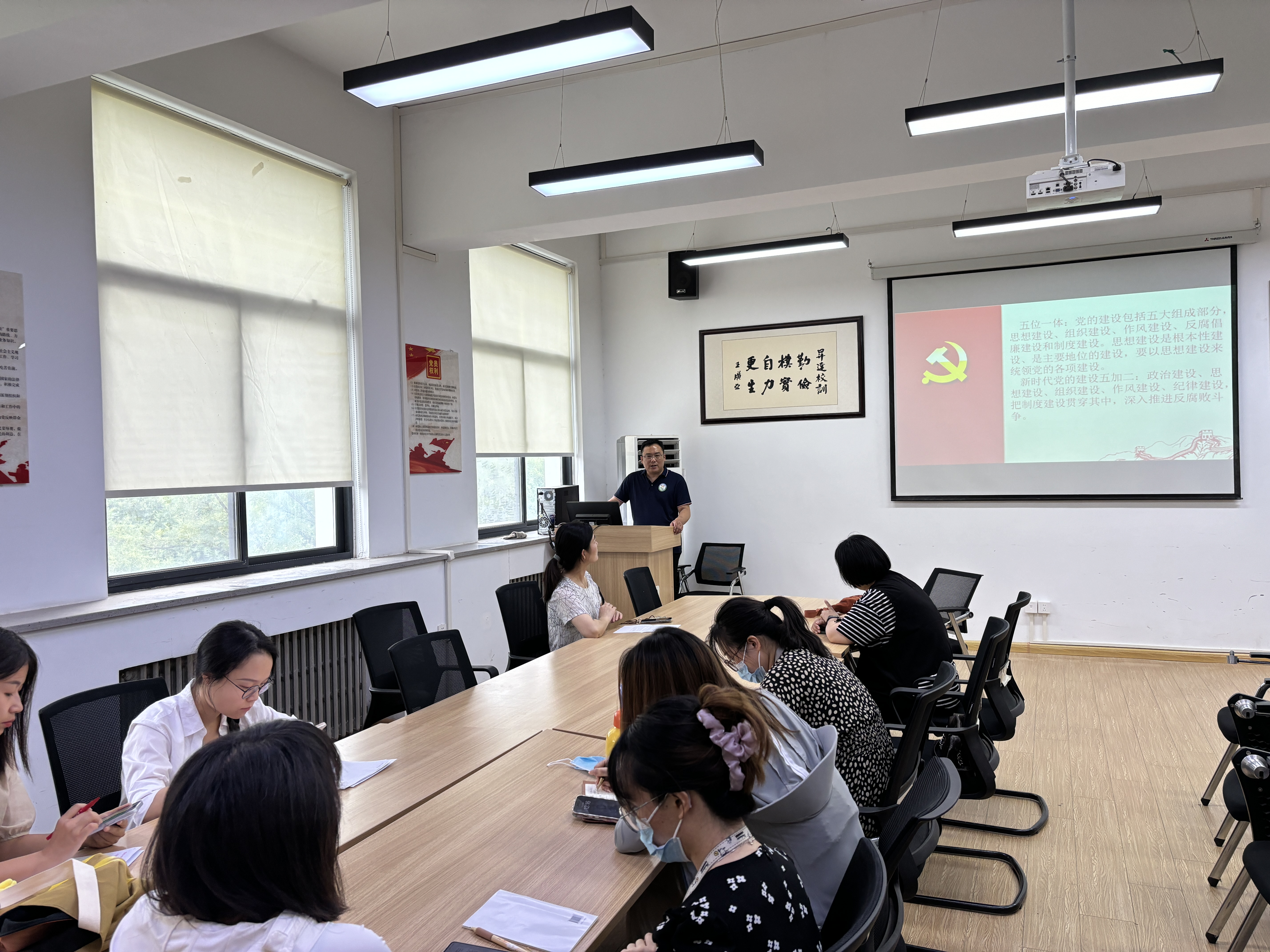在庆祝中国共产党成立的重要时刻,文法学院按照党纪学习教育计划,于7月1日在新闻学和网络与新媒体专业教研室党支部成功举办了一场以“坚定不移把政治建设摆在首位”为主题的专题党课。此次党课由文法学院党委书记亲自授课,旨在进一步加强党纪学习教育和组织建设,提升党员教师的政治素养和理论水平。