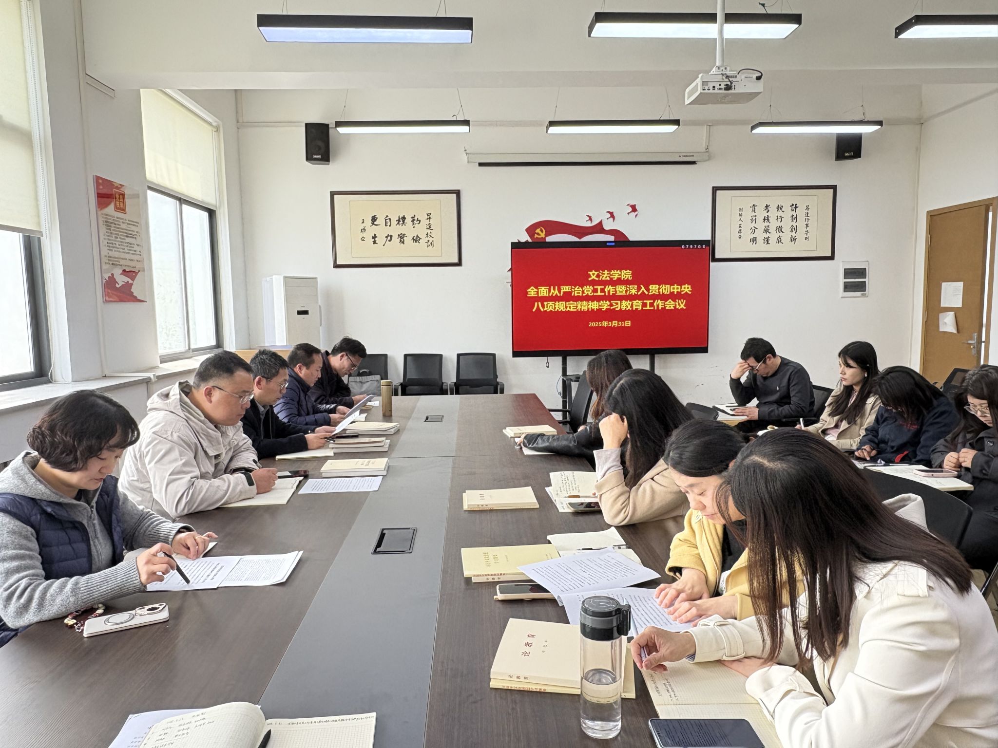 3月31日下午,文法学院在教学1号楼314会议室召开全面从严治党工作暨深入贯彻中央八项规定精神学习教育工作会议,学院党委委员、各党支部书记和组织员参加会议,会议由学院党委书记刘晓川主持。
