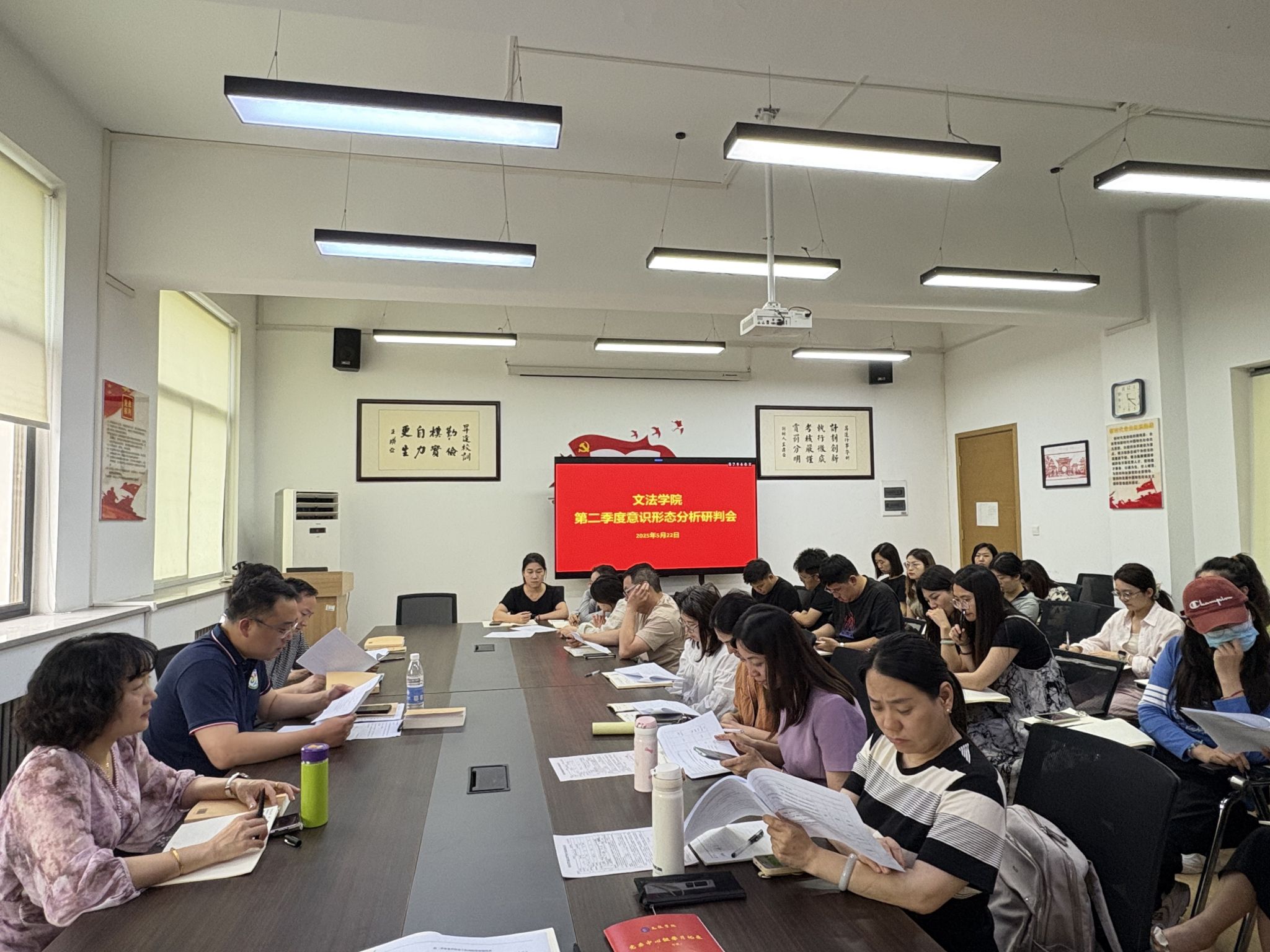 为进一步加强和改进意识形态工作,牢牢掌握意识形态工作的领导权、管理权和话语权,5月22日下午,文法学院于教学1号楼314会议室举行第二季度意识形态工作分析研判会。学院党委委员、党支部书记及辅导员参加会议,会议由党委书记刘晓川主持。