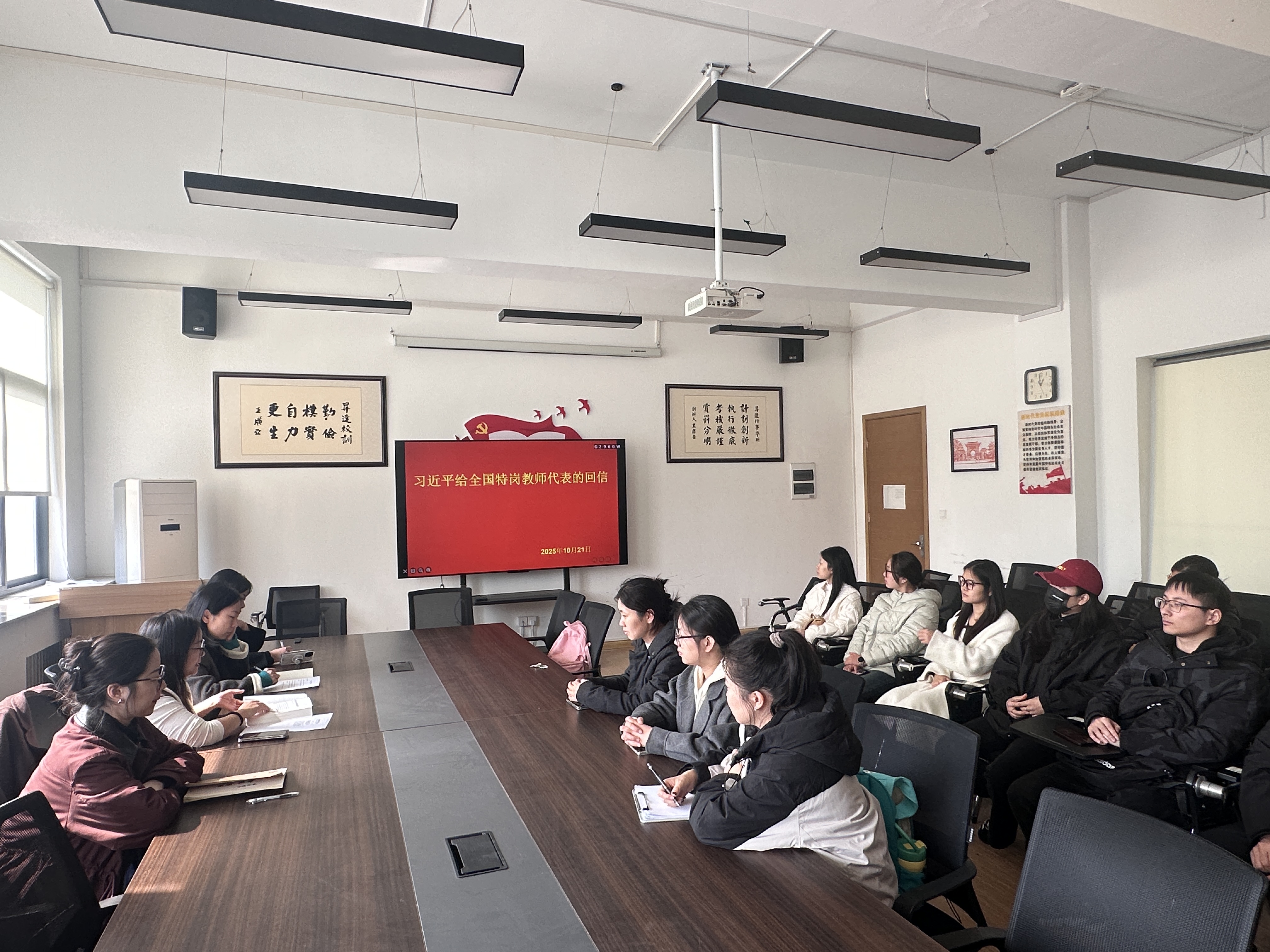 2025年10月21日,文法学院学前教育专业学生第一党支部组织学习习近平总书记给全国特岗教师代表的重要回信精神,支部全体成员参加学习,活动由余雪娇老师带领进行。