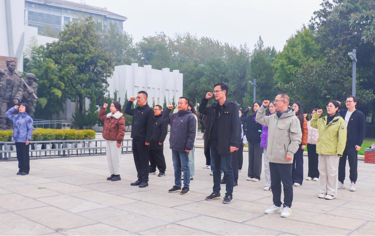 随后,全体党员同志在党委副书记郑玲玲的带领下,面向鲜红的党旗,高举右拳重温入党誓词,铿锵有力的誓言进一步坚定了党员同志们传承红色基因,践行初心使命的信念。