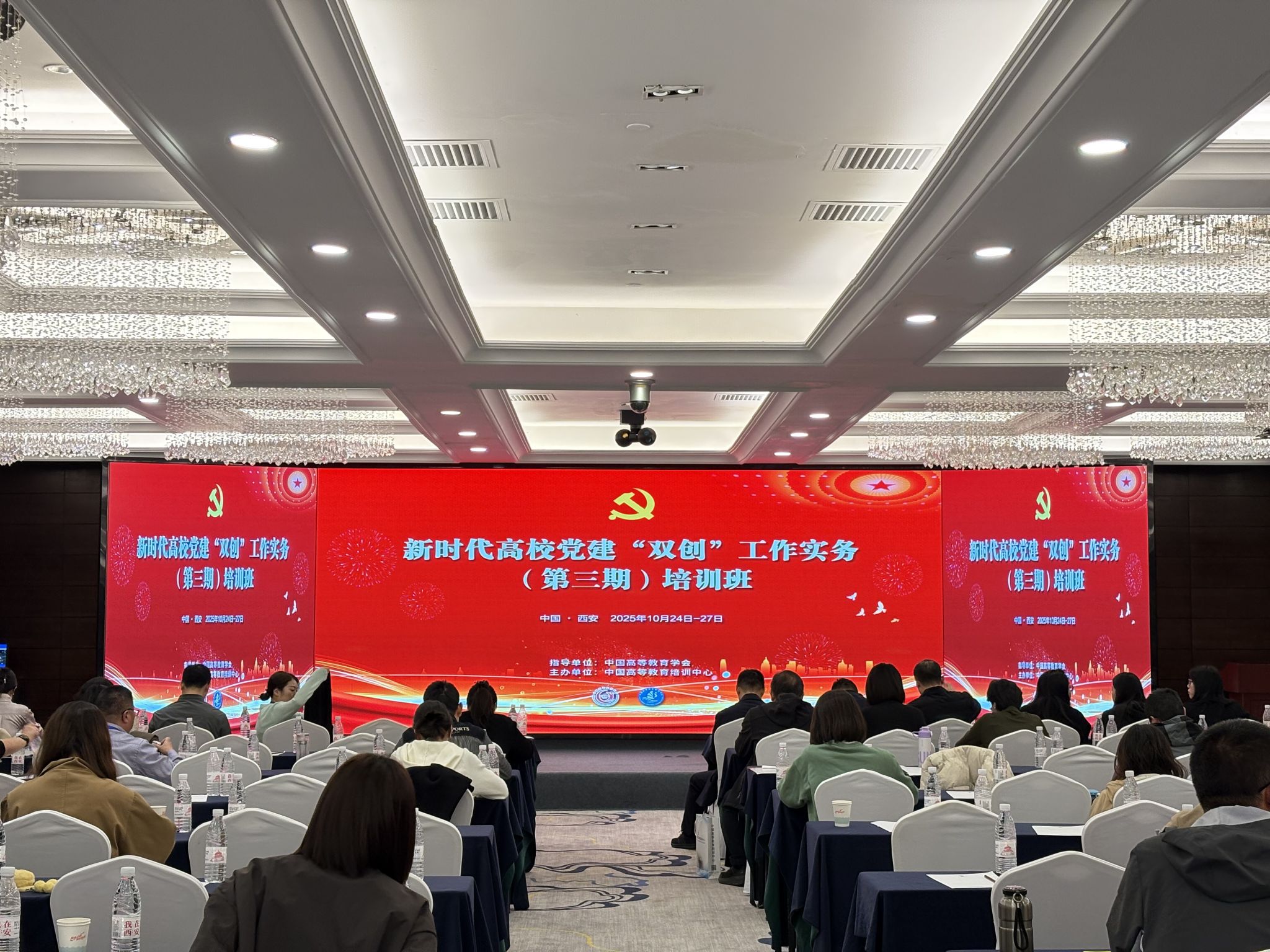 新时代党建“双创”工作实务培训班(第三期),于2025年10月24日至27日在陕西省西安市隆重举行,本次培训班由中国高等教育学会指导,中国高等教育培训中心主办,文法学院组织员刘瑞与学前教育专业学生第二党支部书记刘欣欣参加此次培训。