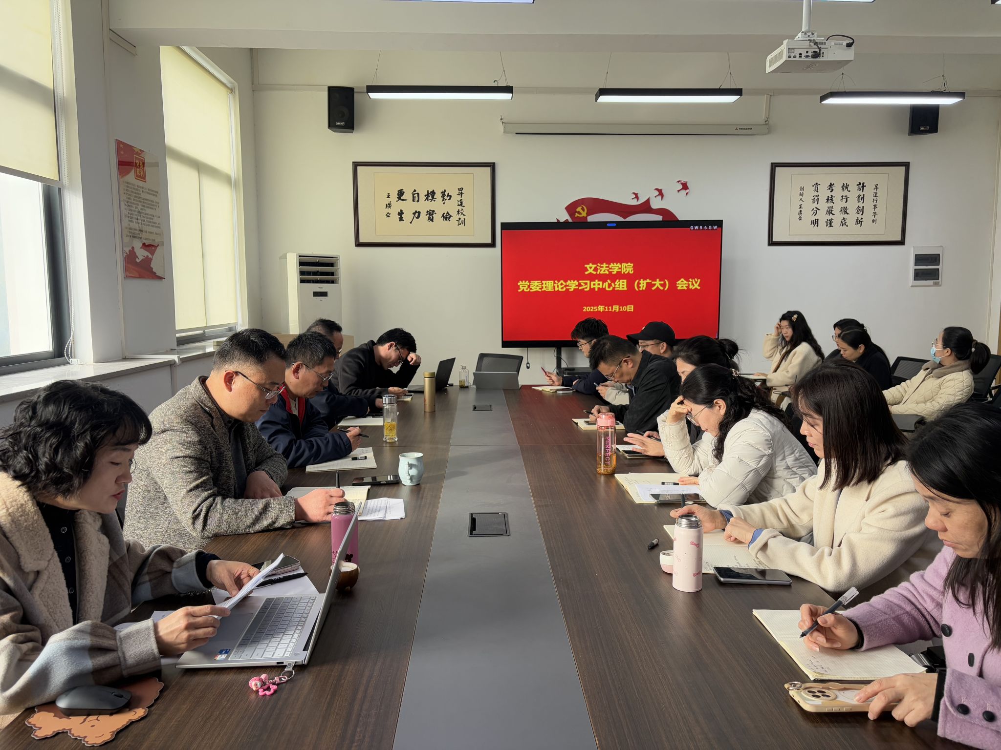 11月10日上午,文法学院党委理论学习中心组(扩大)在教学1号楼314会议室召开学习会,学院全体党委委员、支部书记和组织员参加会议,会议由学院党委书记刘晓川主持。