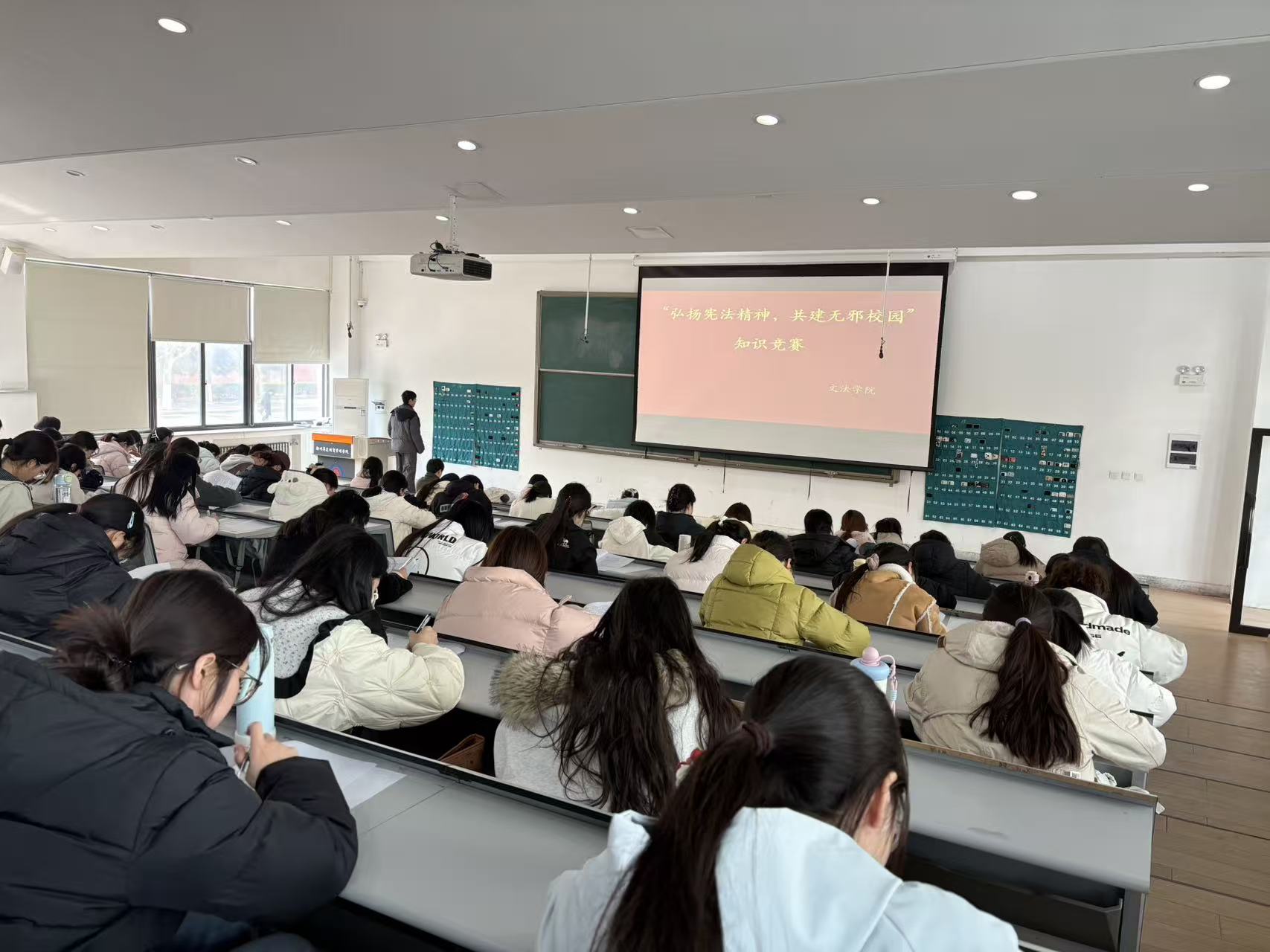 为深入学习贯彻习近平法治思想,牢牢把握“坚持依宪治国、依宪执政”的核心要义,筑牢防范邪教向校园渗透的思想防线,12月8日,文法学院举办“弘扬宪法精神共建无邪校园”主题知识竞赛。