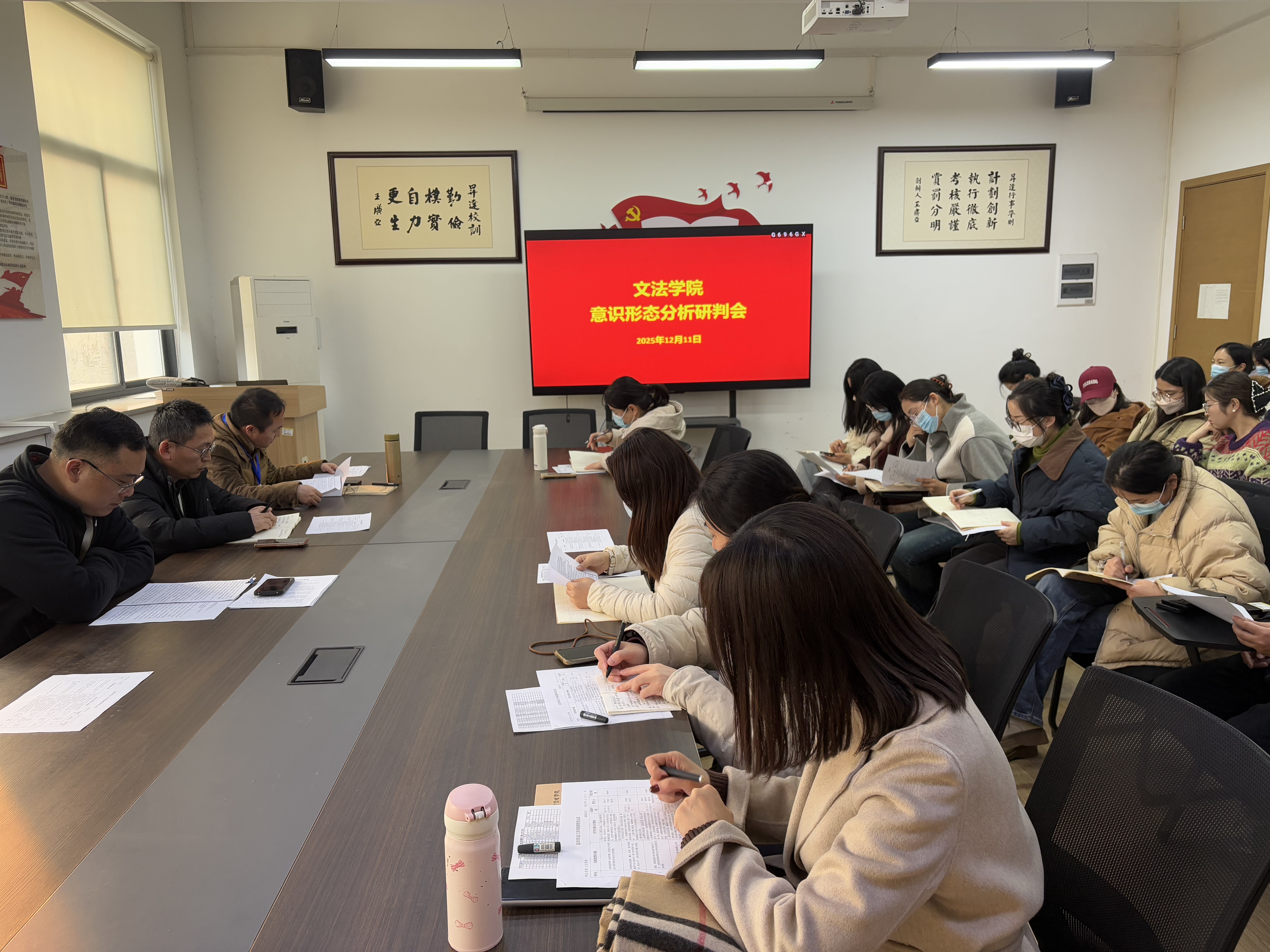 为深入贯彻落实意识形态工作责任制,筑牢校园思想安全屏障,12月11日下午,文法学院在教学1号楼314会议室召开意识形态工作分析研判会。学院党委委员及各党支部书记出席会议,会议由党委书记刘晓川主持。