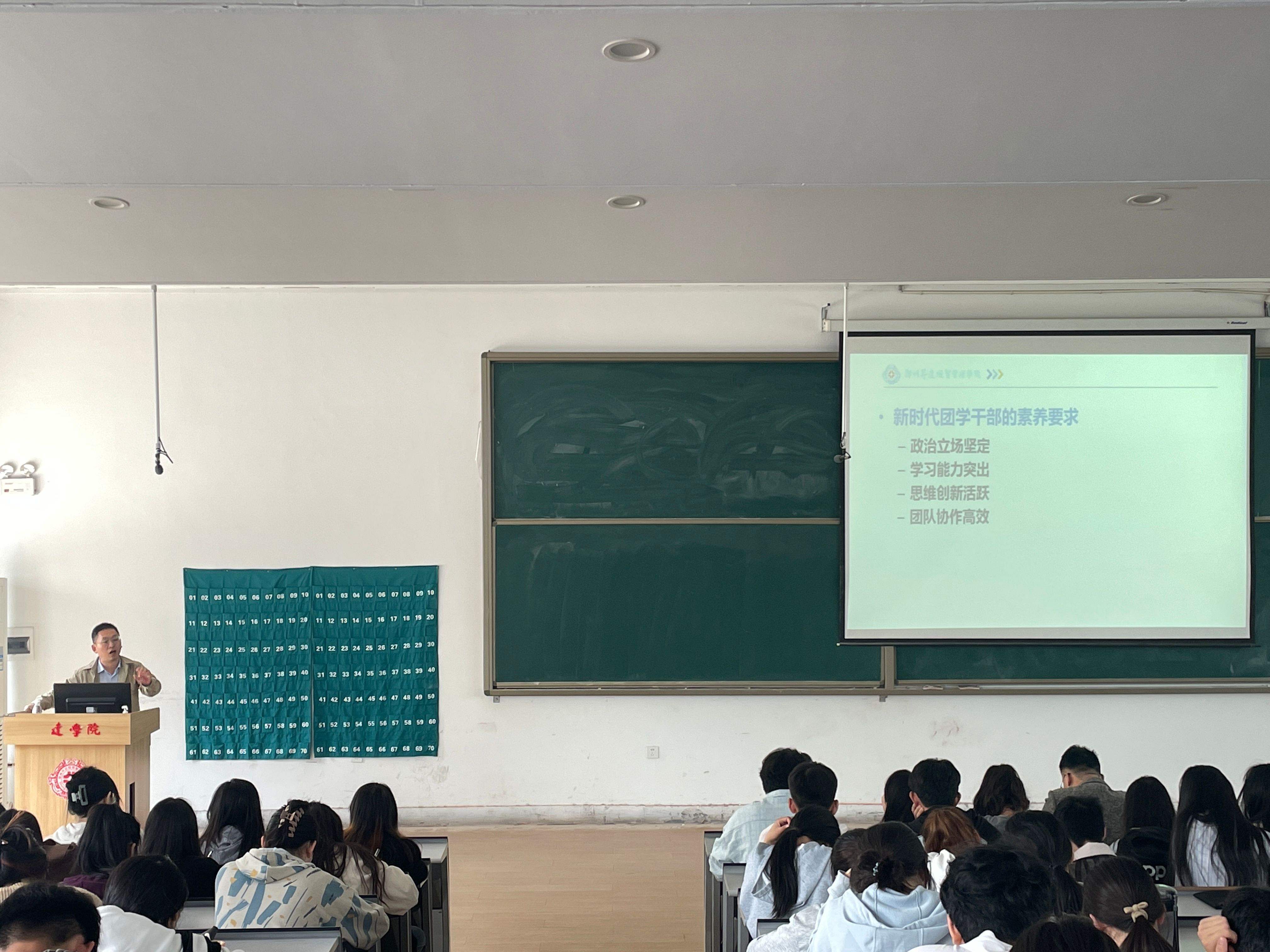 会议开始,院长段丰乐以《新时代团学干部的养成》为主题,引用习近平总书记的语录,鼓励团干部们坚定政治立场,听党话、跟党走。从政治立场、学习能力、思维创新、团队合作方面对新时代团的干部们提出了素养要求,同时列举钱三强、曾国藩的例子,提高大家对培养良好的学习习惯的重要性的意识,呼吁团干部们坚持奋斗,展现青春最靓丽的底色。接着,刘晓川以《中华民族伟大复兴不可阻挡》为题作报告,他以四大文明古国的历史为引,带领团干部们历数中华几千年发展史,从文化经济、科技创新、军事国防等方面的成就展现了祖国的繁荣昌盛。最后,他深刻分析了中华民族当下所面临的挑战与机遇,鼓励团干部们明确目标、凝聚力量,勇挑新时代青年的伟大使命,为中华民族伟大复兴贡献力量。