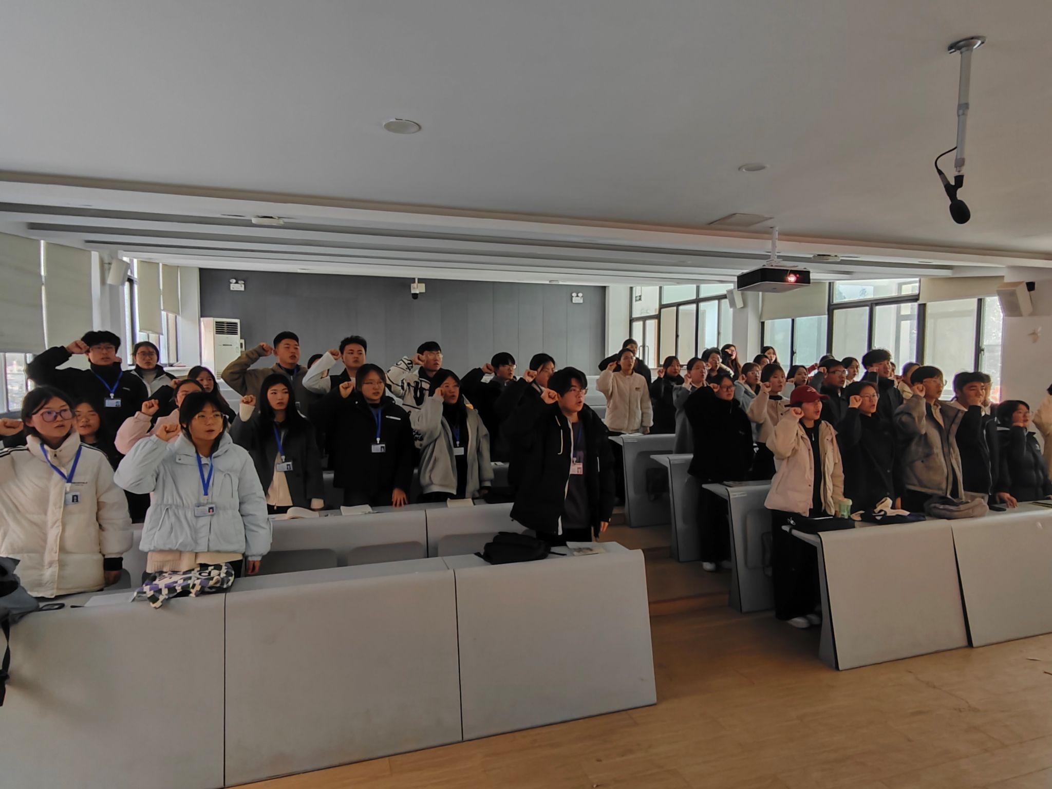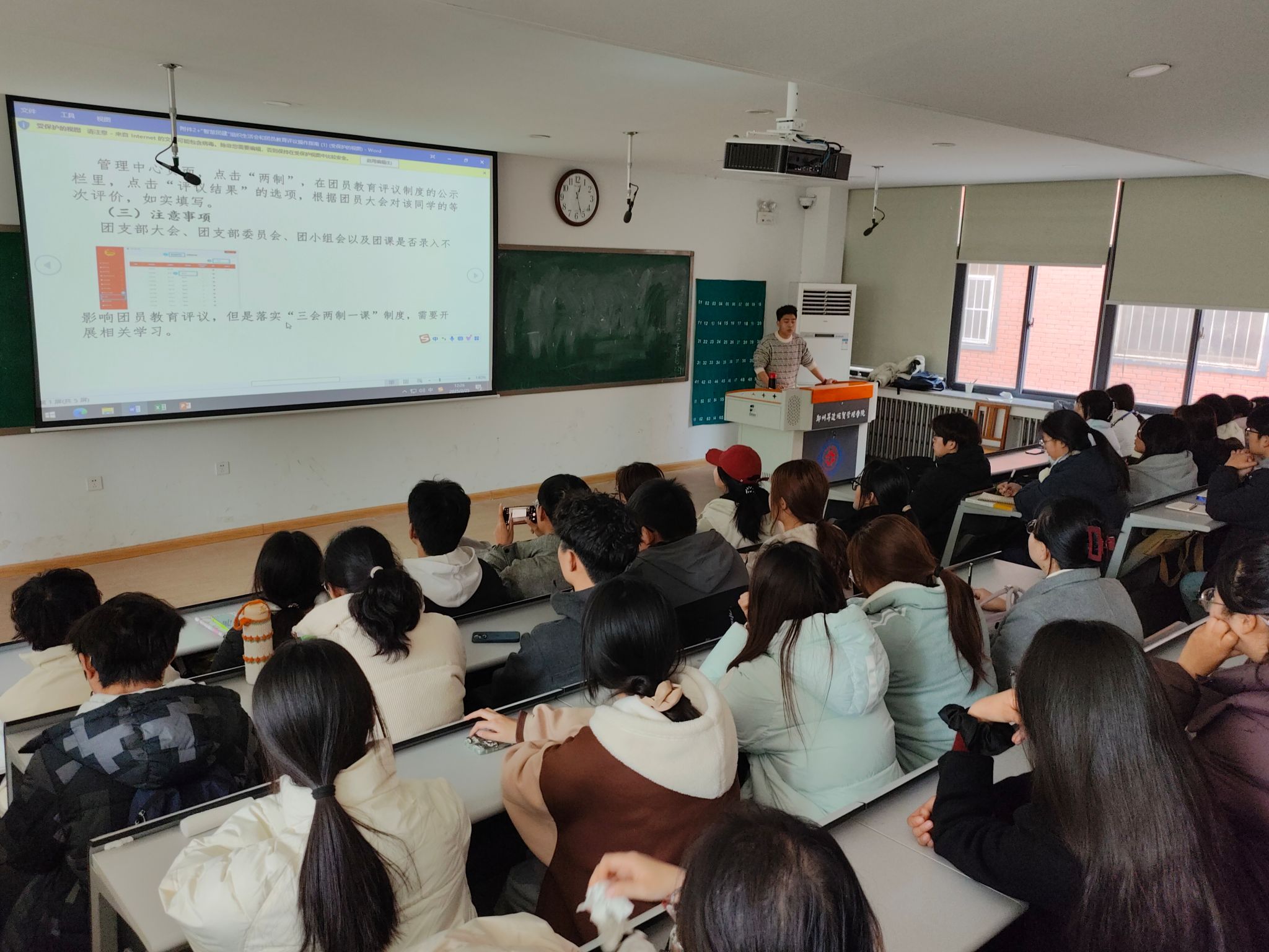 会议伊始,易万喜首先针对2024年度团员教育评议和智慧团建系统团籍注册的工作向各班团支书进行了详细讲解,让在场团支书对相关工作有了更加清晰的了解。紧接着易万喜分享了自己的工作心得和经验,在场团支书们认真倾听,热烈交流。随后在易万喜的带领下,全体团支书共同重温入团誓词,在庄严的氛围中再次明确了自身的职责与使命。最后,马晓萌传达了团委书记郑玲玲老师对团员教育评议和团籍注册工作的要求并对会议内容进行补充,进一步加深了团支书们对工作内容的认识。