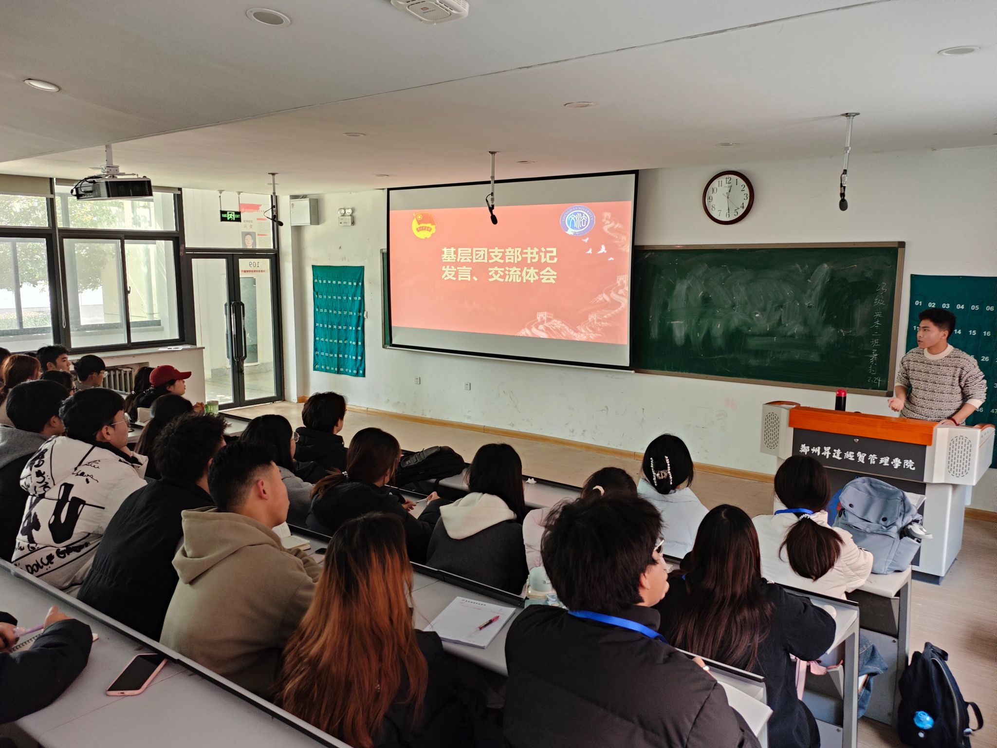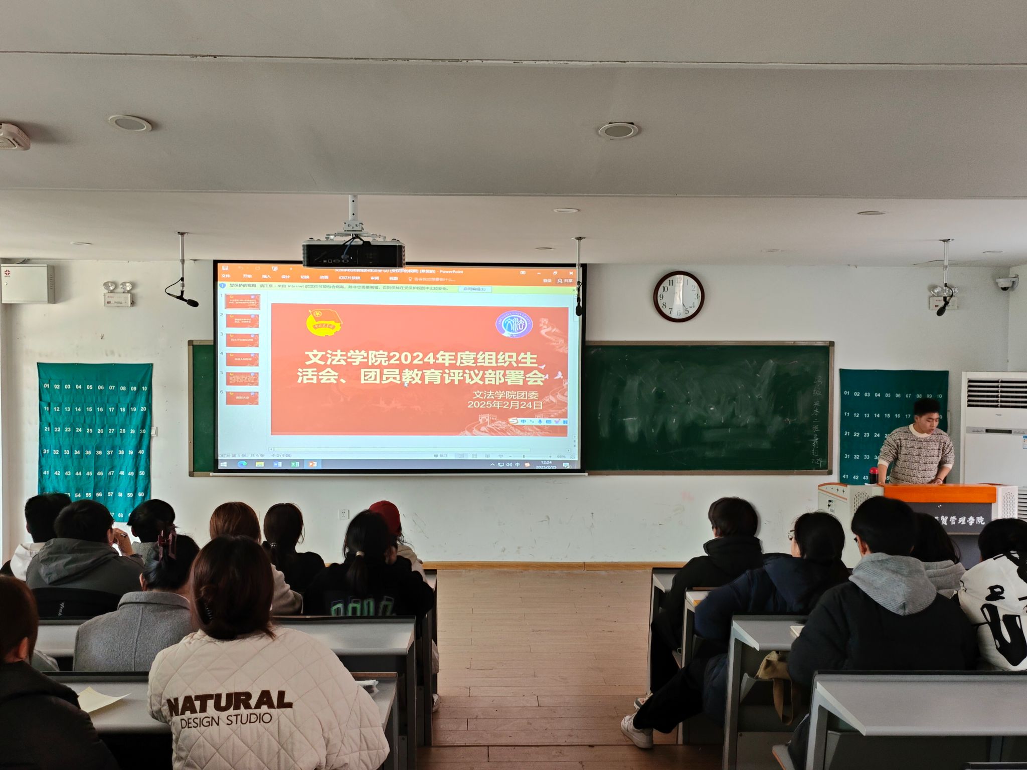 为培养团干部的先进思想政治意识,提高团干部的工作能力,推动各项共青团工作高效开展,2月24日中午12点,由文法学院团委组织部举办的团委组织生活会在教学1号楼109教室召开,出席本次会议的嘉宾有文法学院团委副书记马晓萌,文法学院2024级全体团支书参加会议。会议由文法学院团委组织部副部长易万喜主持。