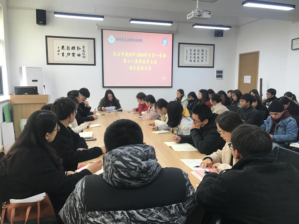 为总结文法学院本学期团委学生会工作,推动我院团学工作良好发展。12月24日中午12点30分,文法学院第18届团委学生会期末总结大会于1号楼314召开。文法学院团委副书记刘瑜老师出席本次会议,文法学院团委学生会全体学生干部到场参加。