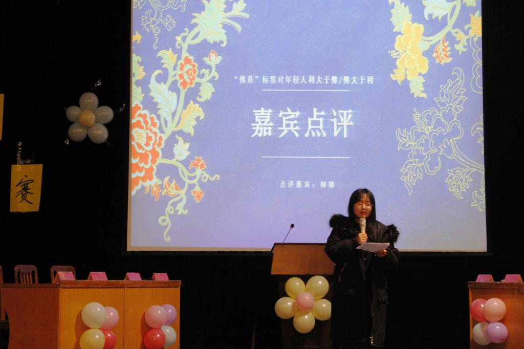 为丰富学生课余生活,培养学生的敏捷思维和应变能力,历时近1个月的文法学院新生辩论赛经过初赛、复赛,11月25日下午6点半,迎来了决赛的日子。由文法学院团委学生会主办、学艺部辩论队承办的新生辩论赛决赛在龙湖报告厅举行,文法学院团委副书记刘瑜老师,原校辩论队教练王龙威,原文法学院第十八届团委学生会主席陈云涛,文法学院第十九届团委副书记袁韵凌、杨柳、张帆,文法学院第十九届学生会主席王怡雯,副主席崔辛格、张卓,文法学院往届辩论队部分代表和文法学院20级全体学生到场观看。