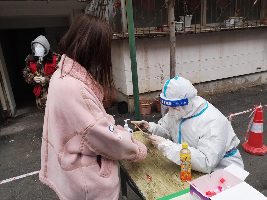 医护人员和社区工作人员以及志愿者在寒风中并肩战斗,在与奥密克戎的战斗中默默贡献着自己的力量。张琰璐同学主要承担的工作是在核酸检测过程中,对辖区居民进行身份信息登记、维持秩序等。张琰璐同学说:“虽然天气寒冷,但我们从没有人叫苦叫累,因为这是我们大学生的责任,只要党和国家需要我们,我们就会义无反顾的站出来,冲在抗疫的一线。”