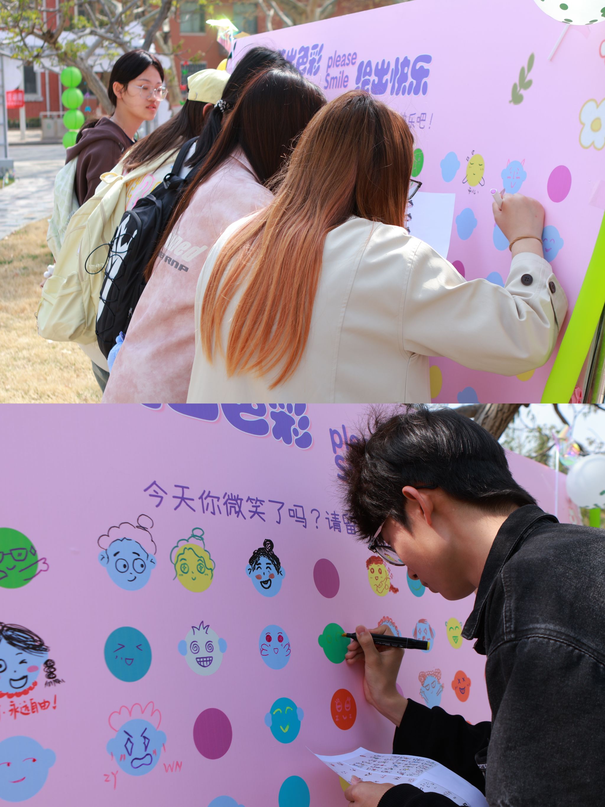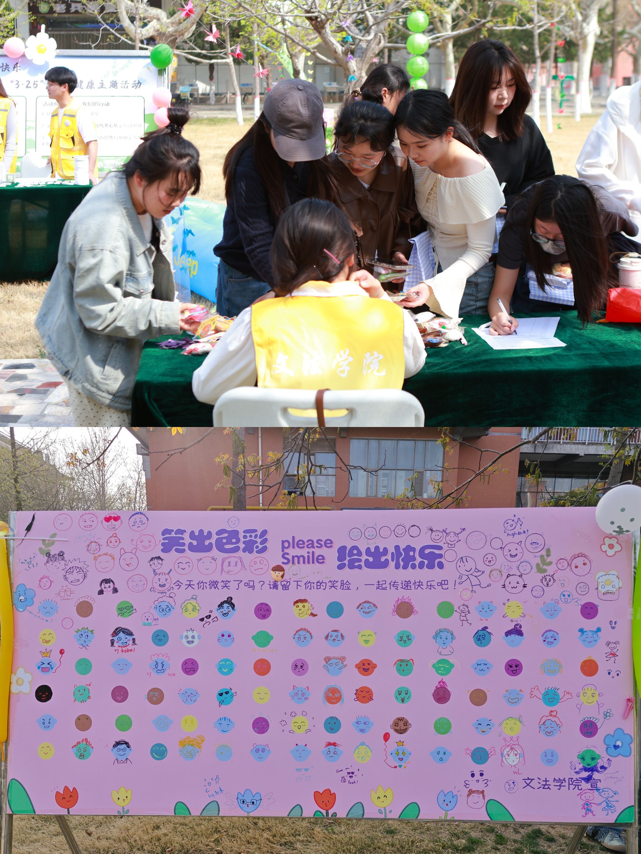 为丰富我校大学生的校园文化生活,进一步提升大学生对心理健康的关注,促进他们的心理调适与情绪释放。3月26日下午,我院积极响应学校心理健康中心的号召,在学苑会馆东侧花园举办3·25系列活动之“笑出色彩 绘出快乐”笑脸涂鸦活动。