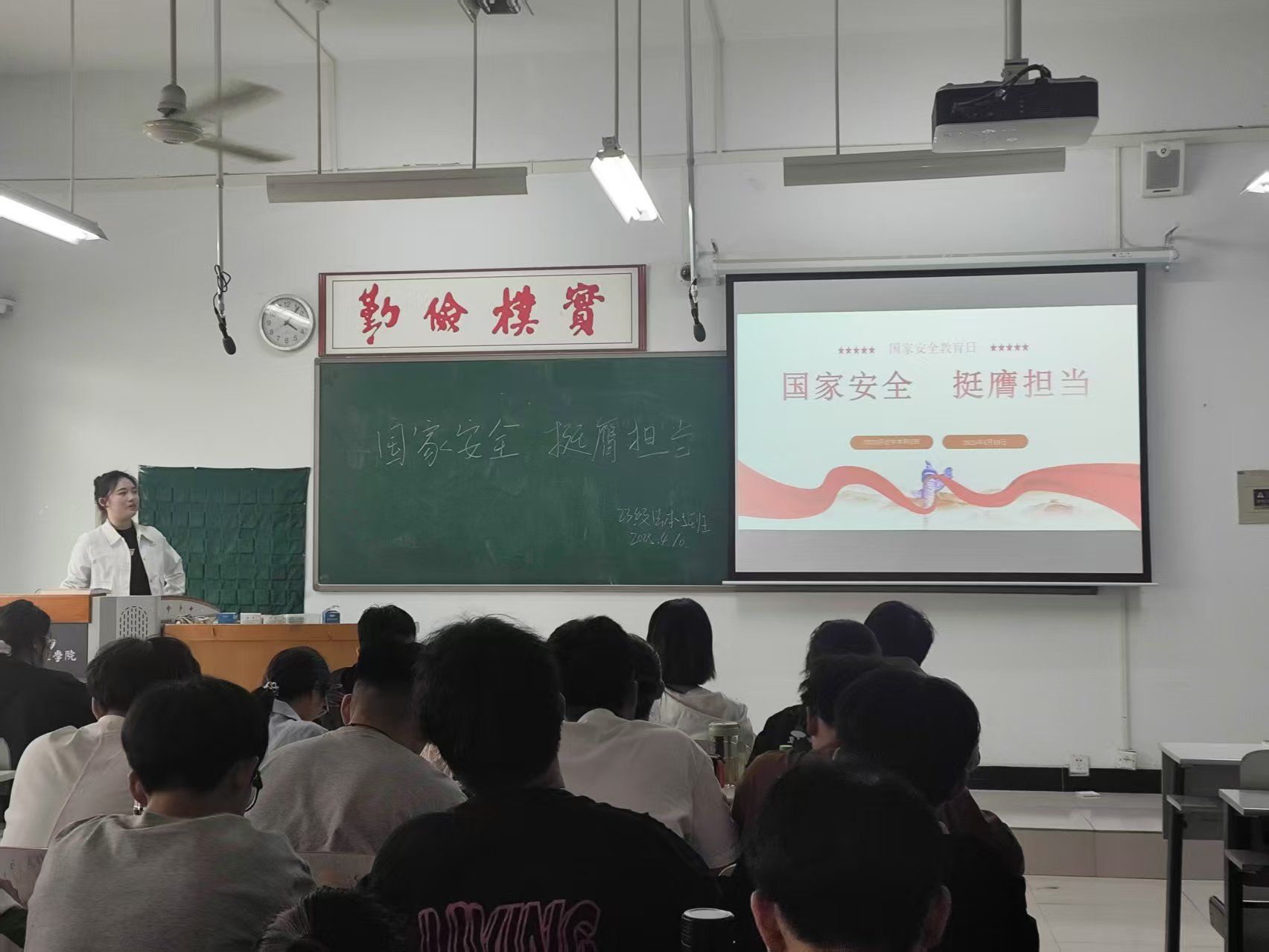 4月9日中午,2022级汉语言文学本科3班在道镕楼306教室举办此次团日活动,活动由团支书张丁菡主持,全体同学到场参加。活动伊始,张丁菡点明本次活动的主题,并从“什么是国家安全、当前国家安全形势和青年如何参与国家安全建设,维护国家安全”三个方面展开介绍。在张丁菡的详细介绍下,大家充分认识到维护国家安全是每个公民应尽的义务。接着,在场同学自主发言,纷纷就如何在日常生活中维护国家安全发表个人观点。最后,张丁菡对此次活动进行总结,鼓励同学们努力学习法律法规知识,遵守国家安全规定,同时也要关注时事热点,积极参与社会公益活动,以实际行动践行总体国家安全观。