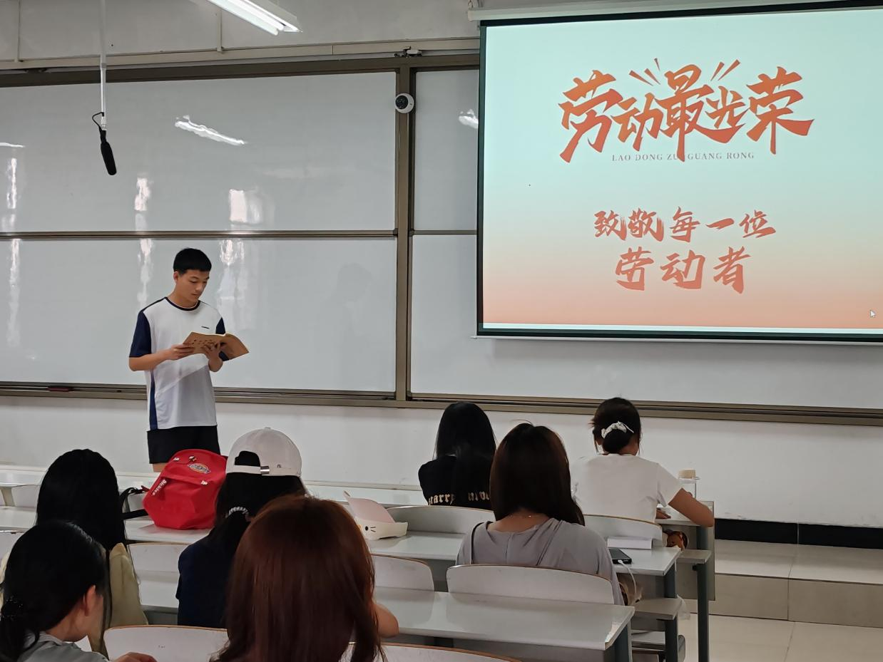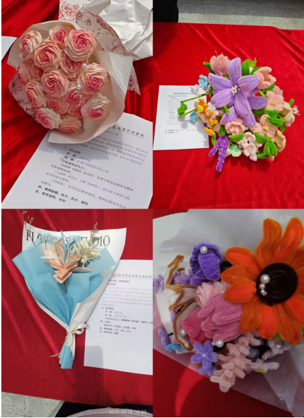 各专业按照学院工作要求,在前期通过班会和展板形式宣传的基础上,开展了符合专业特色的主题活动。活动涵盖思想引领、技能实践、个人演讲、创意展示等多个方面,充分展现了文法学子热爱劳动、尊重劳动的精神风貌。汉语言专业学生组织“劳动金句征集”“我的劳动故事”等活动,以激励学生从身边榜样汲取力量,向优秀榜样学习劳动经验以促进自身劳动精神发展;学前教育专业学生利用所学专业知识以及手工技能,以“创意插花——鲜花献给最美劳动者”和“巧手匠心,创意无限”为主题,分小组手工制作花式各样的“插画”作品献给劳动者,错落有致的布局象征劳动者们虽分工不同,却共同构建和谐社会,整体造型寓意着对劳动者的赞美与感恩;法学专业学生开展了“劳动最光荣”主题演讲活动,以深化学生对劳动教育内涵的认识,锻炼学生的语言表达和逻辑思维能力,营造崇尚劳动的班级氛围。