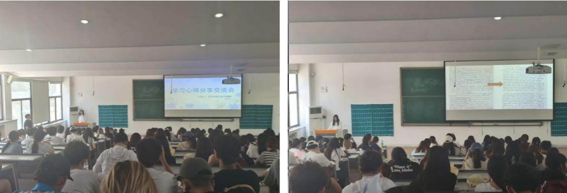 读书会赋能,以交流深化认知。为了让阅读不止于“读”,更在于“思”与“悟”,金阳老师牵头召开了读书分享会。以学生为主体,先由学生代表介绍近期阅读的书籍,再轮流针对自己所读书籍中的精彩片段进行诵读,并阐述自己对于本段文字的感想和观点启示。在此过程中有人讲述自己被书中人物打动的瞬间,有人结合生活实际探讨书中的观点。在读书会的最后再由老师进行总结。