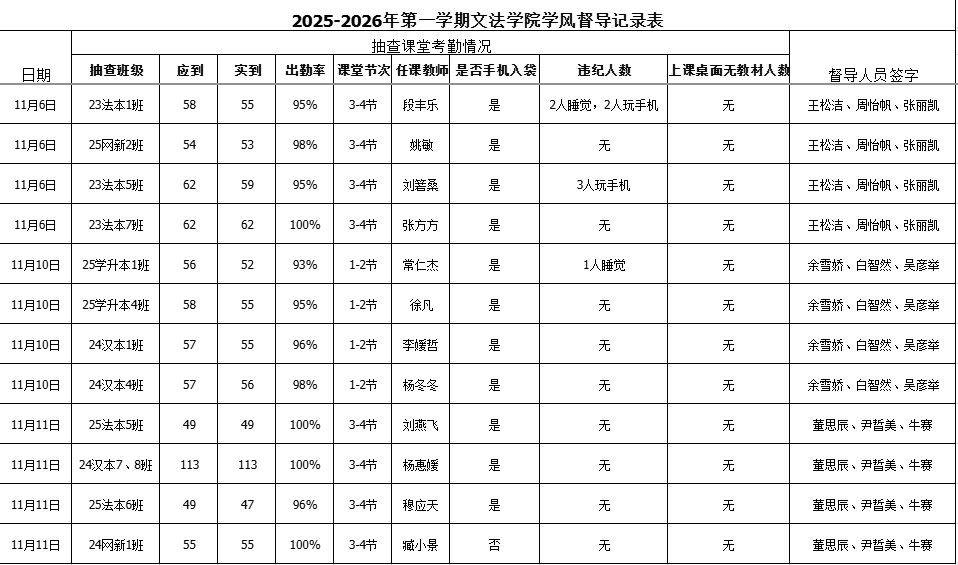 本次活动围绕“文明课堂、文明校园、文明宿舍、文明教室”四大核心板块,结合学院专业特色开展系列活动。在文明课堂建设中,学院通过主题班会、宣传海报、微信推文等形式发出倡议,明确课堂要求,组织签名承诺活动;辅导员组建课堂巡查小组,每日巡查上课情况,建立台账并纳入考核,推动课堂考勤率、手机入袋率显著提升,学风日益浓厚。