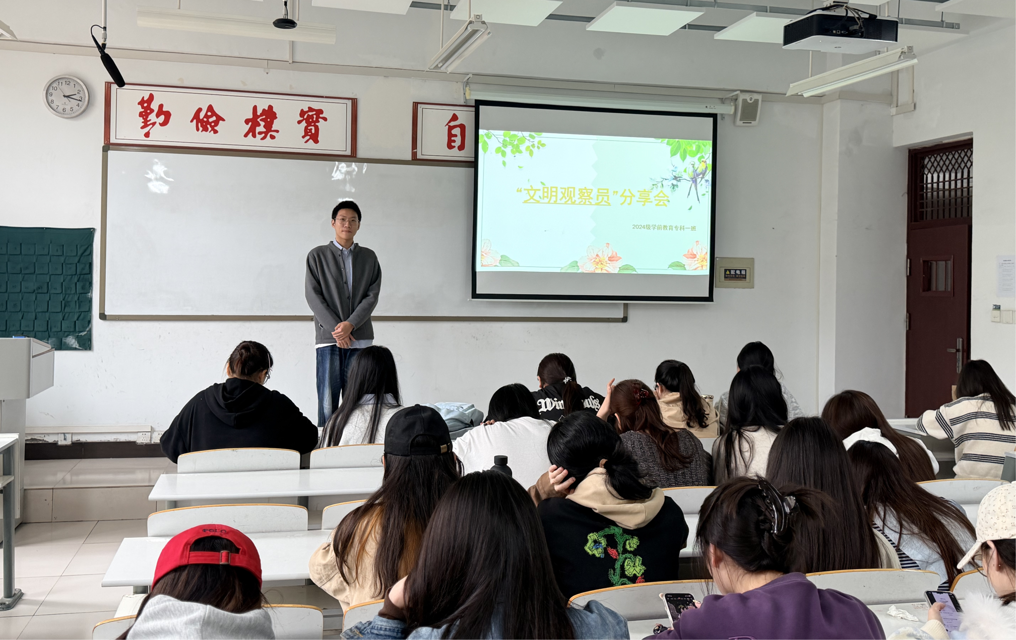 在文明校园建设方面,学院积极落实“每日八千步”健康行动,周达标率稳居全校前列;各班级开展丰富的实践活动,如2025级汉本1班组织“礼仪标兵”志愿服务队维护校园环境;2024级学前教育本科1班开展文明观察员分享会;2024级法学本科3班开展反诈宣传团日活动等,让文明之风吹遍校园角落,师生、同学关系愈发融洽。