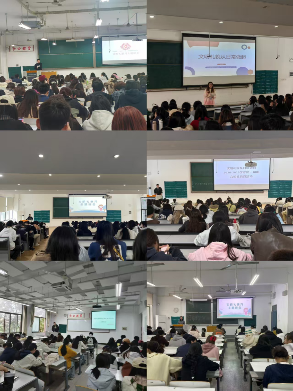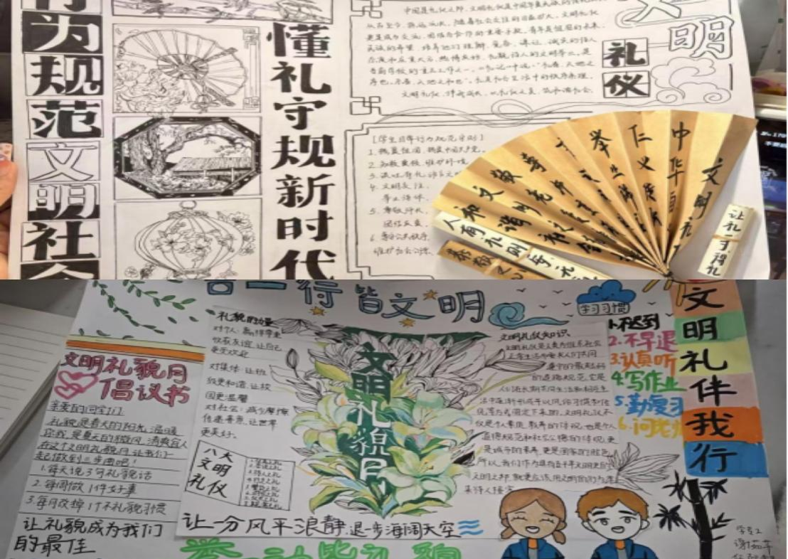 此外,各年级结合专业特色开展了文明礼貌系列活动,如2023级法本3班开展模拟法庭文明礼仪专项实训,2023级汉本1班推出“文学经典中的礼仪之美”主题活动和图书借阅达标活动,2024级多个班级分别开展主题演讲、手工制作、文明细节探讨、手抄报创作等活动,2025级汉本2班开展文明礼貌短视频创作活动等。这些活动将文明教育与专业学习深度融合,深化了学生对文明的理解。