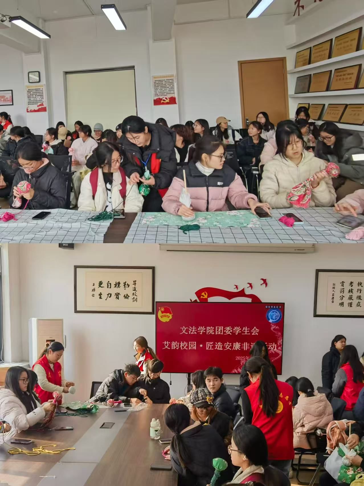 为传承一二・九运动中青年学子的爱国情怀与责任担当,丰富校园文化生活,提升学生对传统技艺的认知与兴趣,12月9日中午,由文法学院团委学生会主办,文法学院宣传部、权益部共同承办的“手作芳华 心承星火”传承非物质文化遗产手工制作活动在教学1号楼院内和教学1号楼314室举行。文法学院团学干部130余人参加了本次活动。