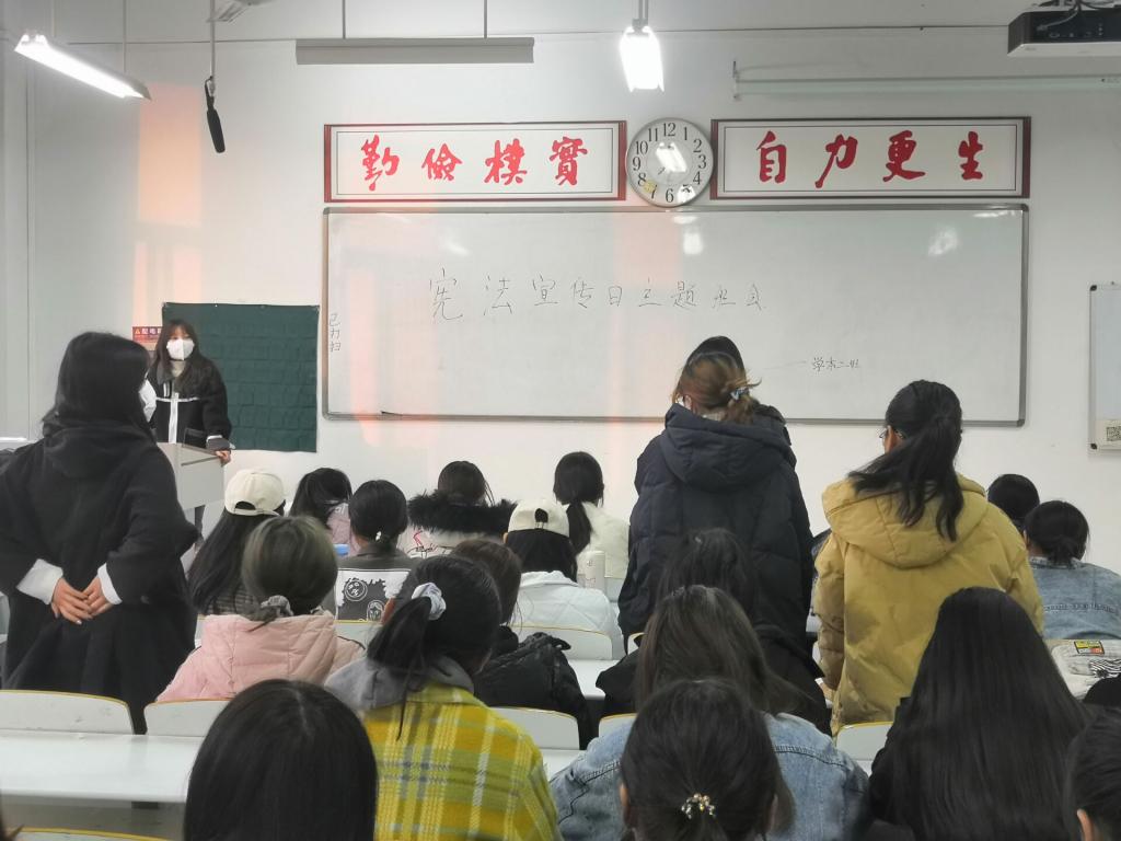 今年12月4日是第八个国家宪法日,11月29日至12月5日是第四个“宪法宣传周”。文法学院结合专业特色,围绕“以习近平法治思想为指引,坚定不移走中国特色社会主义法治道路”这一主题开展了一系列活动。其中文法学院各专业各班在辅导员老师的组织下宪法主题班会。