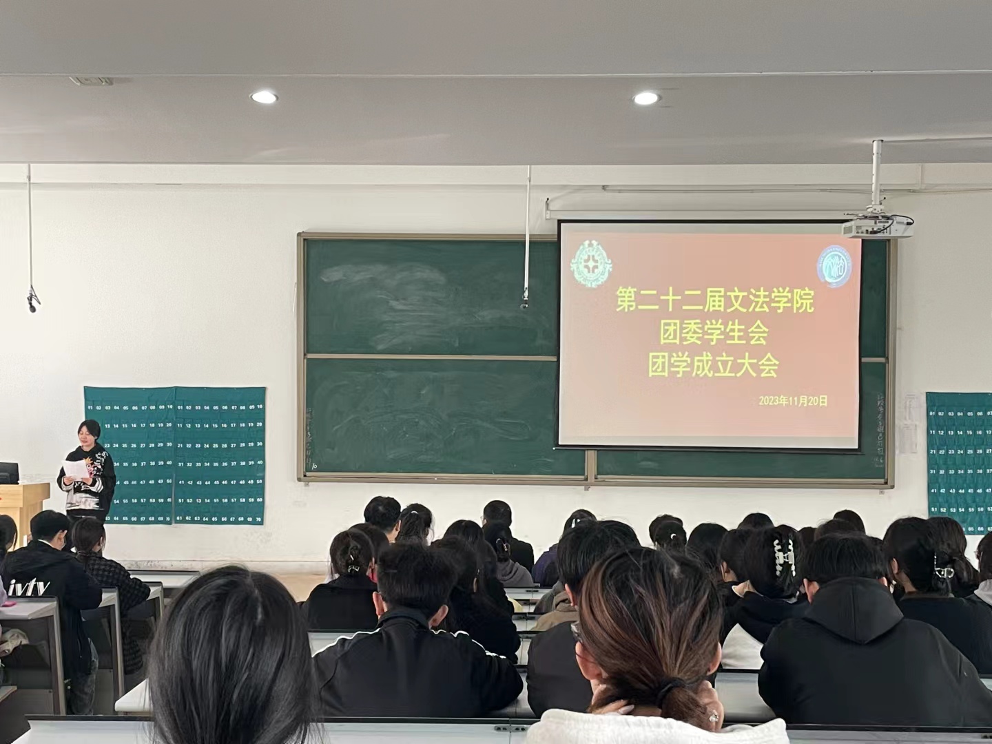 11月20日中午,文法学院第二十二届团委学生会成立大会在教学1号楼118教室隆重举行。参加本次大会的领导和老师有文法学院党委书记刘晓川,文法学院团委书记郑玲玲,2023级新生辅导员吕凌云、李晓田、娄源婷、余雪娇、常伟刚、董思辰。文法学院第二十二届团委学生会全体成员参加了大会,大会由团委学生会主席李亦煊主持。